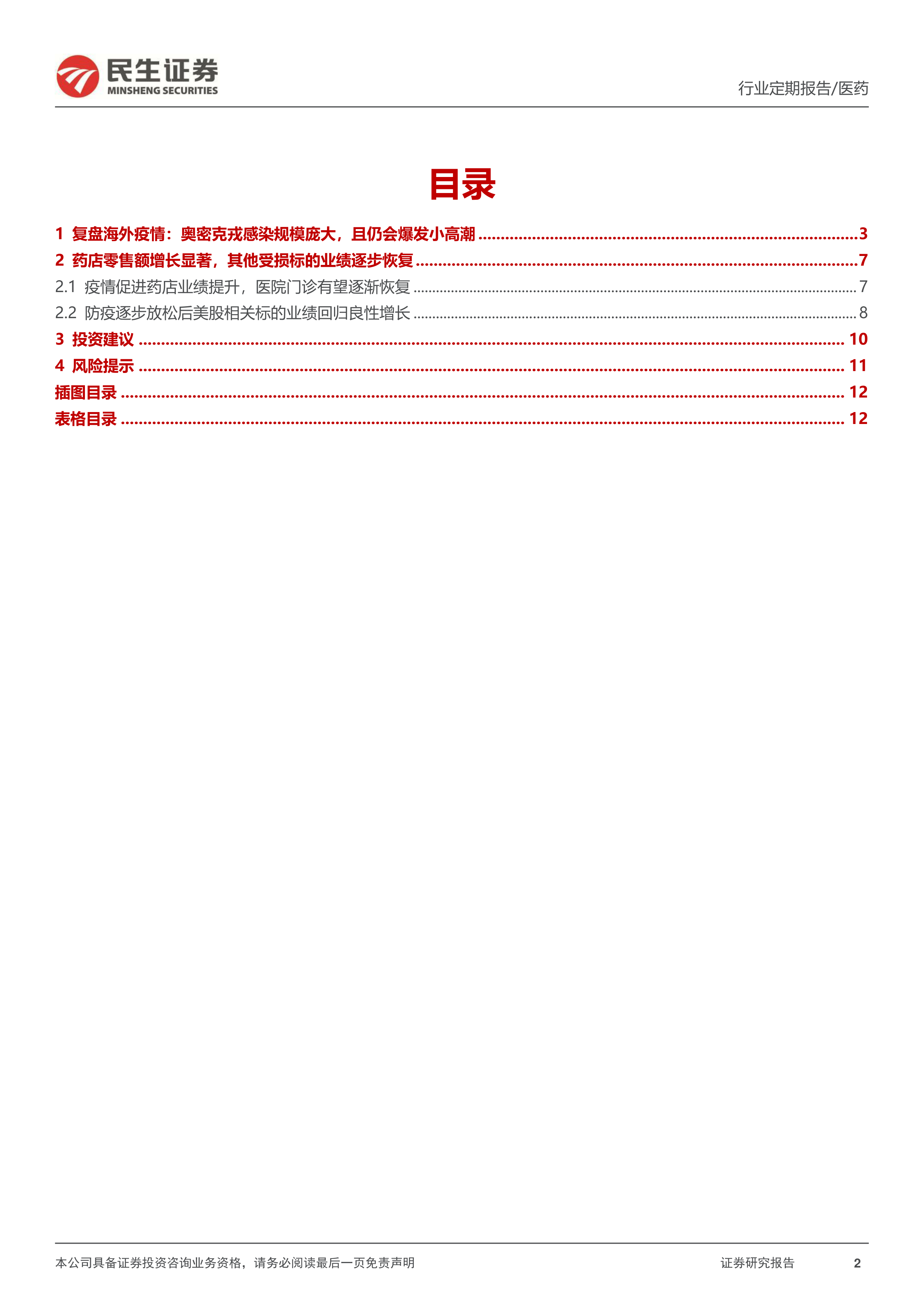 本报告通过对海外奥密克戎疫情的复盘分析,结合国内疫情防控政策调整和医药行业数据,预测了国内疫情发展趋势,并分析了医药行业未来的发展机遇和挑战。 报告认为,国内医疗新基建和行业复苏值得关注,并维持对医药行业的“推荐”评级,同时提供了具体的投资建议和风险提示,为投资者提供了较为全面的参考信息。 报告的数据分析严谨,逻辑清晰,为投资者提供了有价值的投资参考。