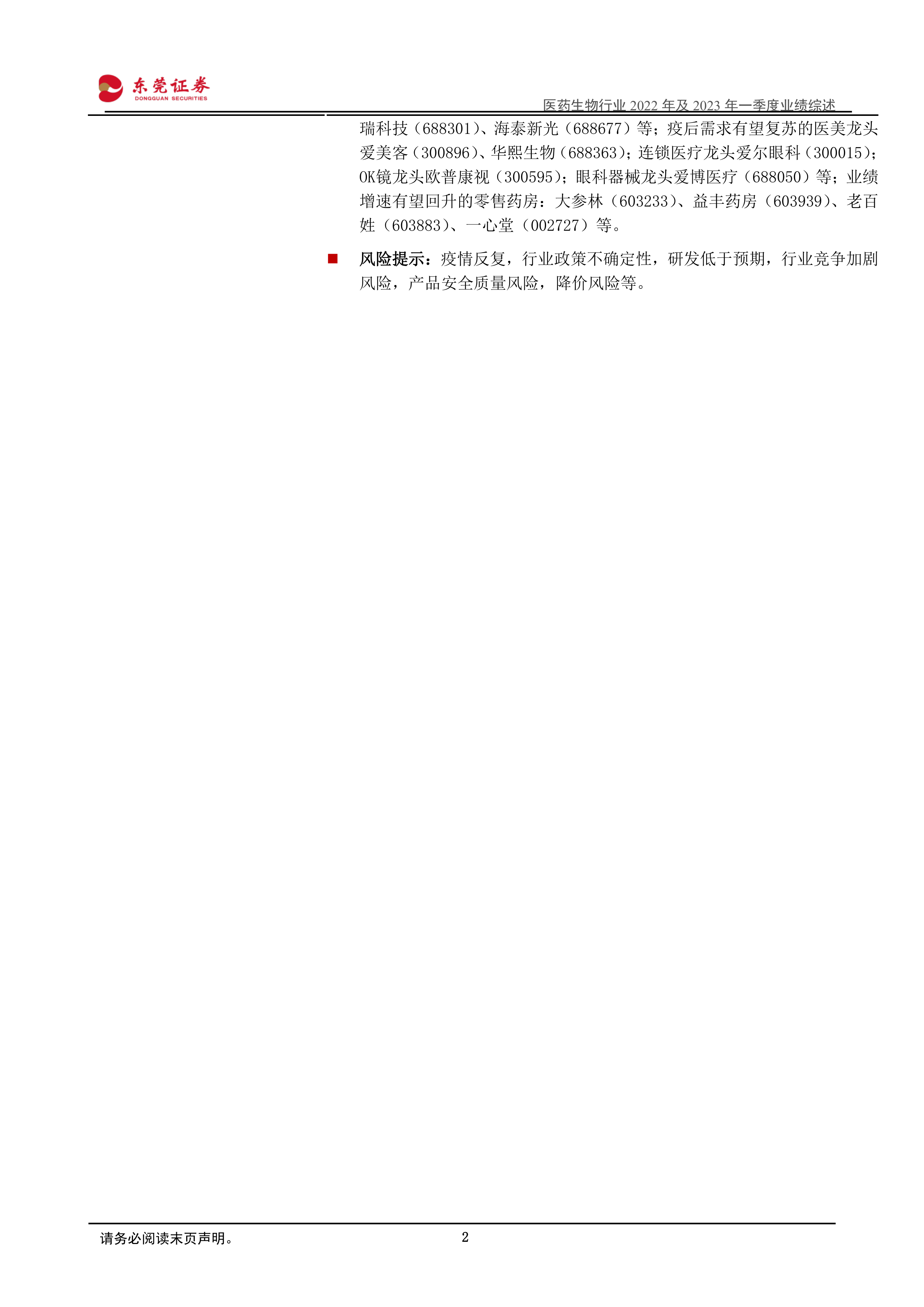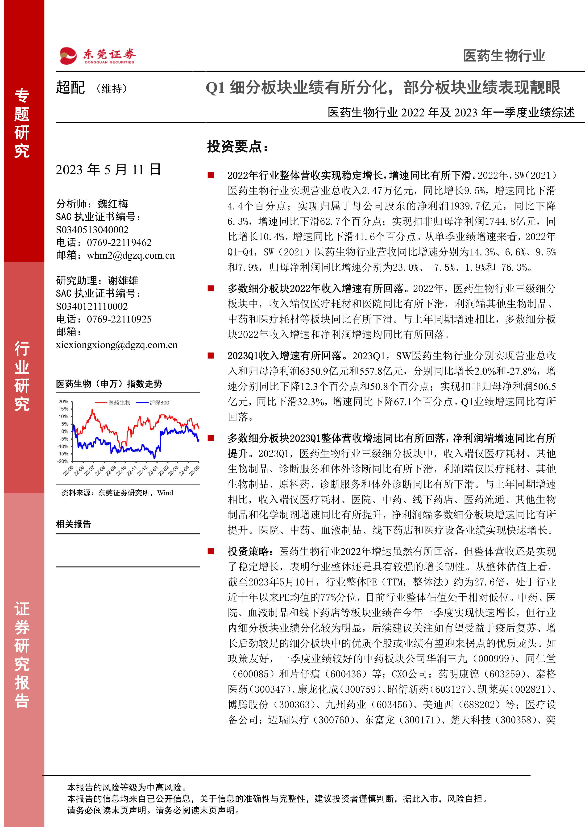 本报告基于东莞证券研究所发布的《医药生物行业2022年及2023年一季度业绩综述》进行数据分析,核心观点如下: