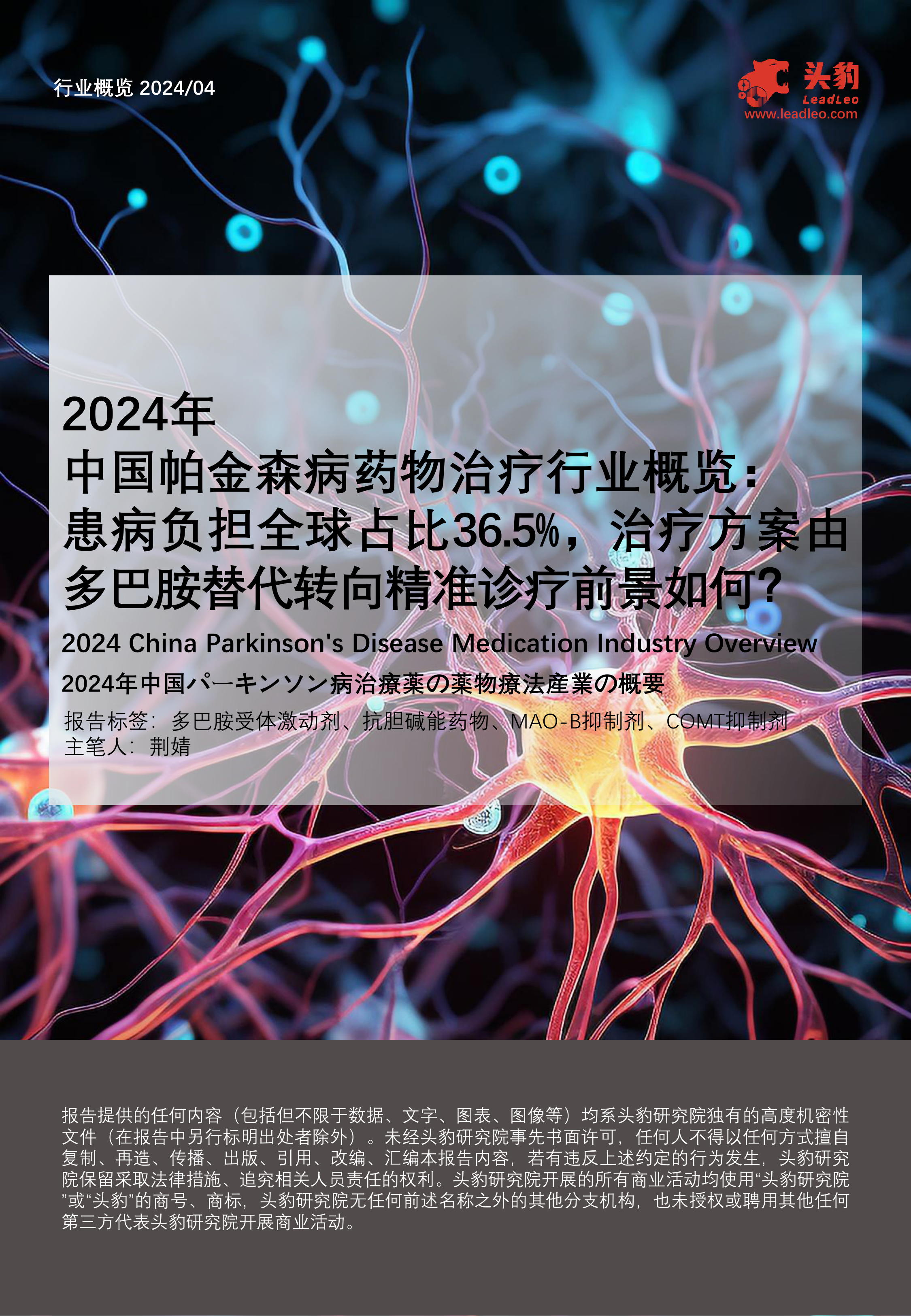 本报告基于头豹研究院的数据,对2024年中国帕金森病药物治疗行业进行市场分析。核心观点如下:
