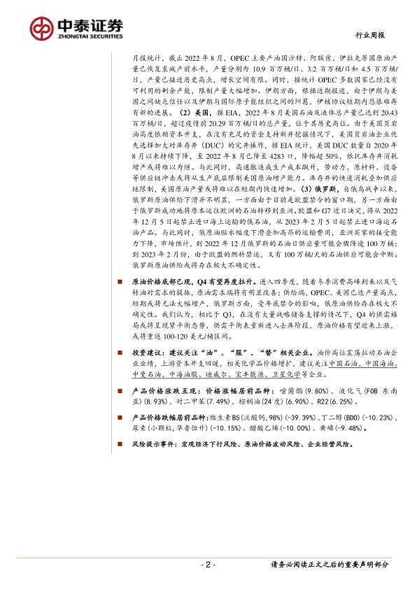 风险提示事件:宏观经济下行风险、原油价格波动风险、企业经营风险。