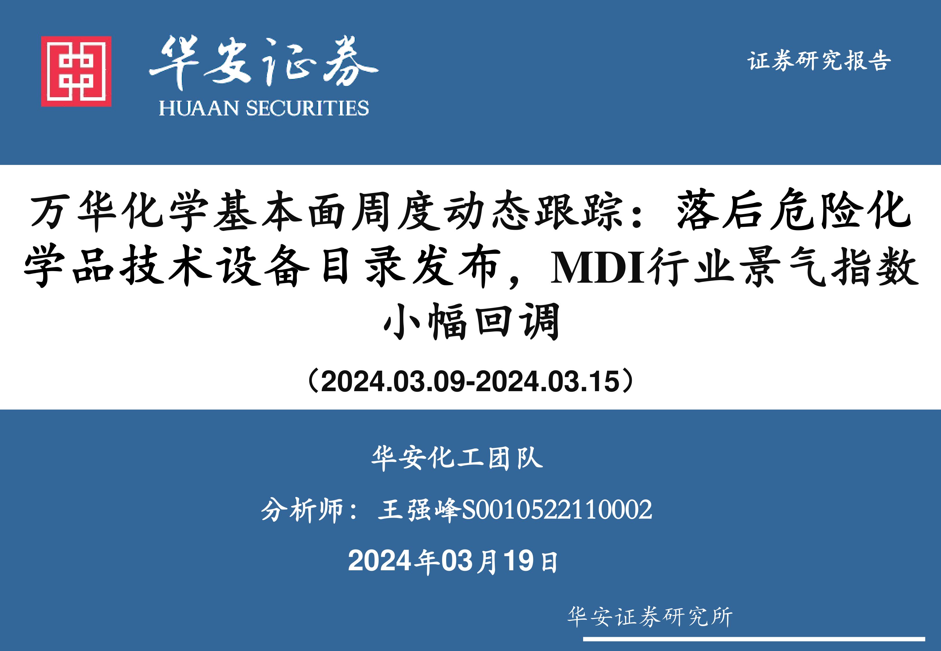 万华化学基本面周度动态跟踪:落后危险化学品技术设备目录发布,MDI行业景气指数小幅回调