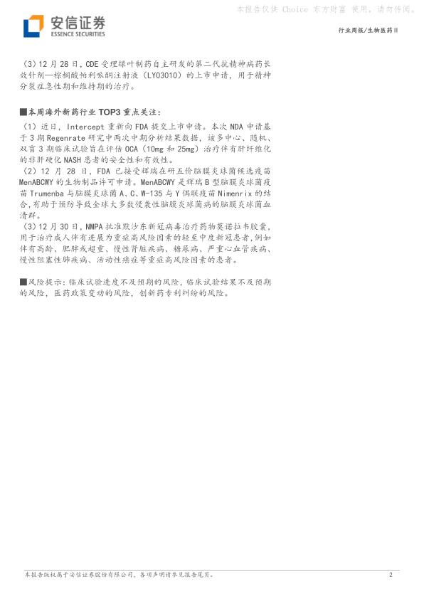 本周国内新药行业 TOP3 重点关注: