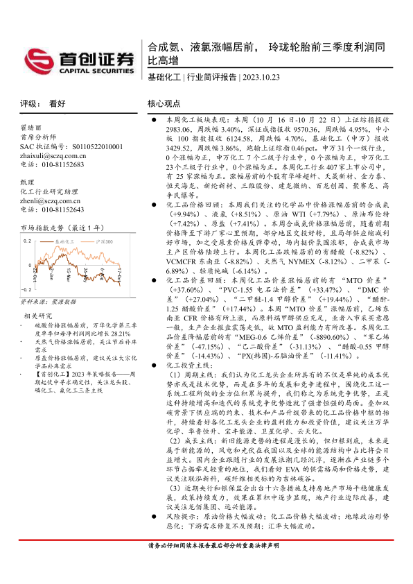 基础化工:合成氨、液氯涨幅居前,玲珑轮胎前三季度利润同比高增