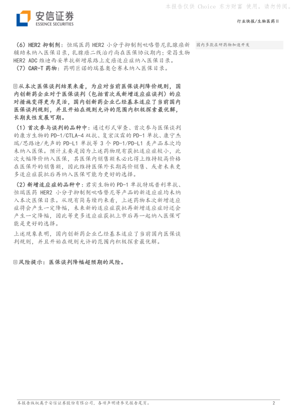 风险提示:医保谈判降幅超预期的风险。