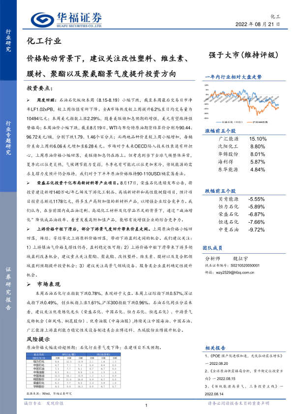 化工行业:价格轮动背景下,建议关注改性塑料、维生素、膜材、聚酯以及聚氨酯景气度提升投资方向