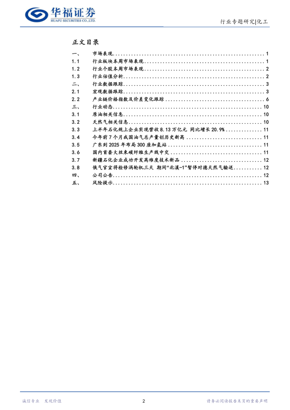报告总结了近期化工行业的重大动态,包括荣盛石化投资千亿布局新材料等产业项目,以及上半年石化行业经济运行情况、我国油气总产量创历史新高、广东布局加氢站等信息。此外,报告还对几家主要化工企业的公司公告进行了简要概述,包括其上半年的业绩表现和投资计划。