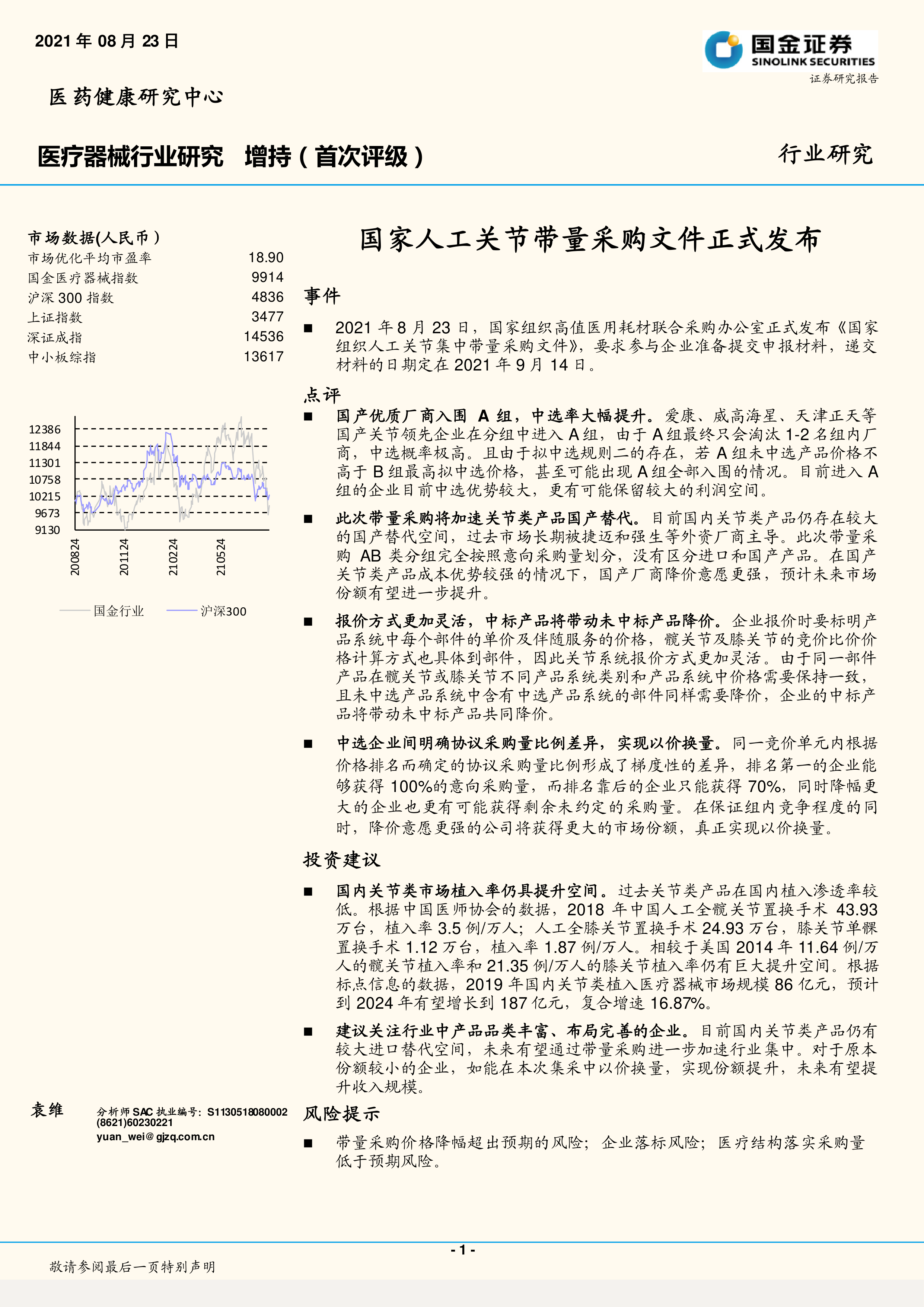 2021年8月23日,国家组织高值医用耗材联合采购办公室正式发布《国家组织人工关节集中带量采购文件》,要求参与企业准备提交申报材料,递交材料的日期定在2021年9月14日。