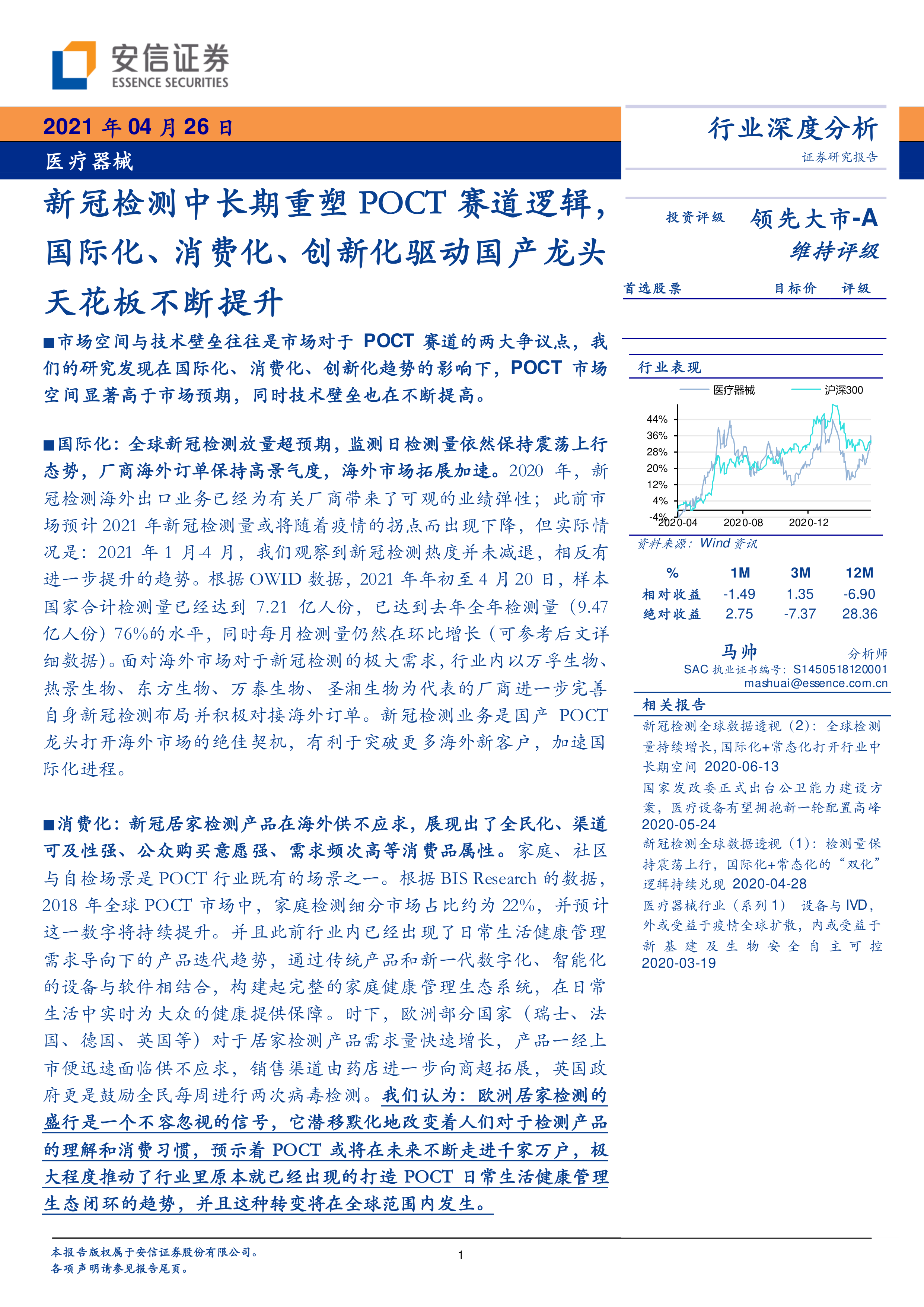 医疗器械行业深度分析:新冠检测中长期重塑POCT赛道逻辑,国际化、消费化、创新化驱动国产龙头天花板不断提升