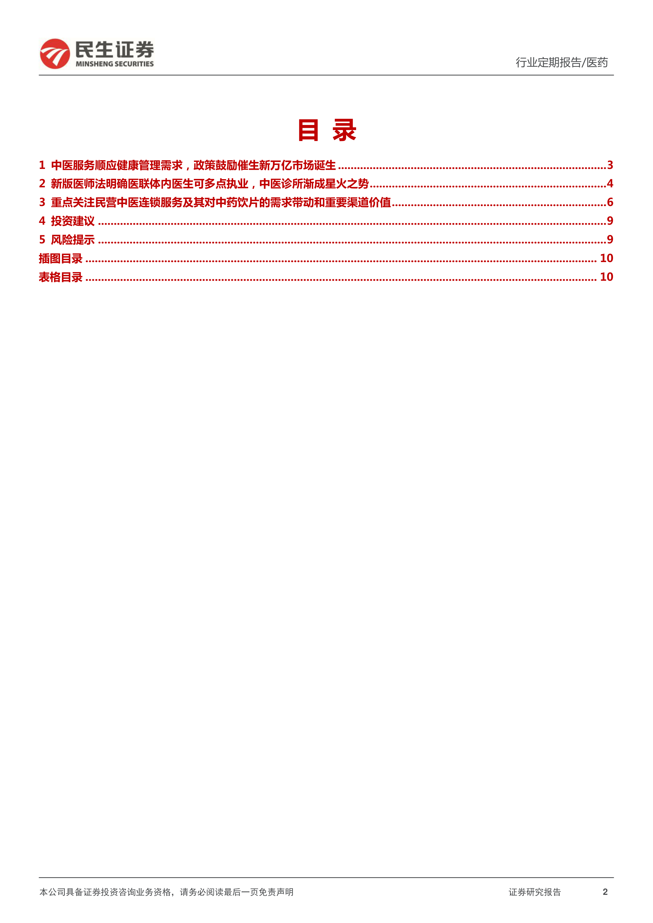 重点关注规范化、医联体形式的中医连锁服务及其对中药饮片等的需求带动和重要渠道价值。我们看好中医医联体形式的中医连锁医疗服务,管理运营效率高,获客成本低,规范化运行更容易吸引医生多点执业,考虑到诊所备案制给民营连锁提供充足合作标的,并购整合加速连锁化是大势所趋。此外,中医连锁医疗服务还将拉动上游中药材的高质量发展,同时对于中药饮片(包含配方颗粒)的渠道价值有望持续凸显。