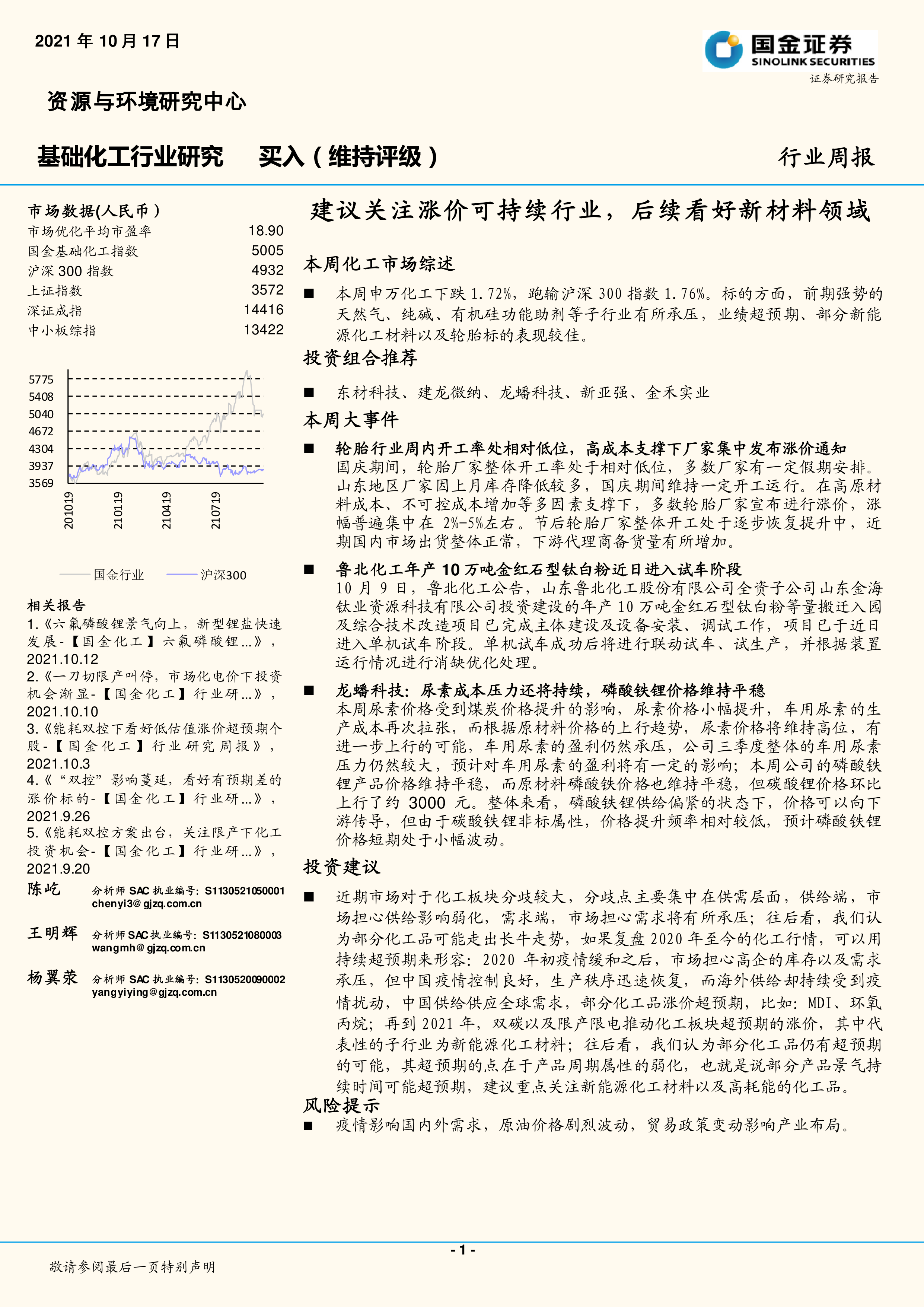 本报告以国金基础化工指数为基准,分析了本周化工市场表现,并对重点子行业和公司进行了深入研究。