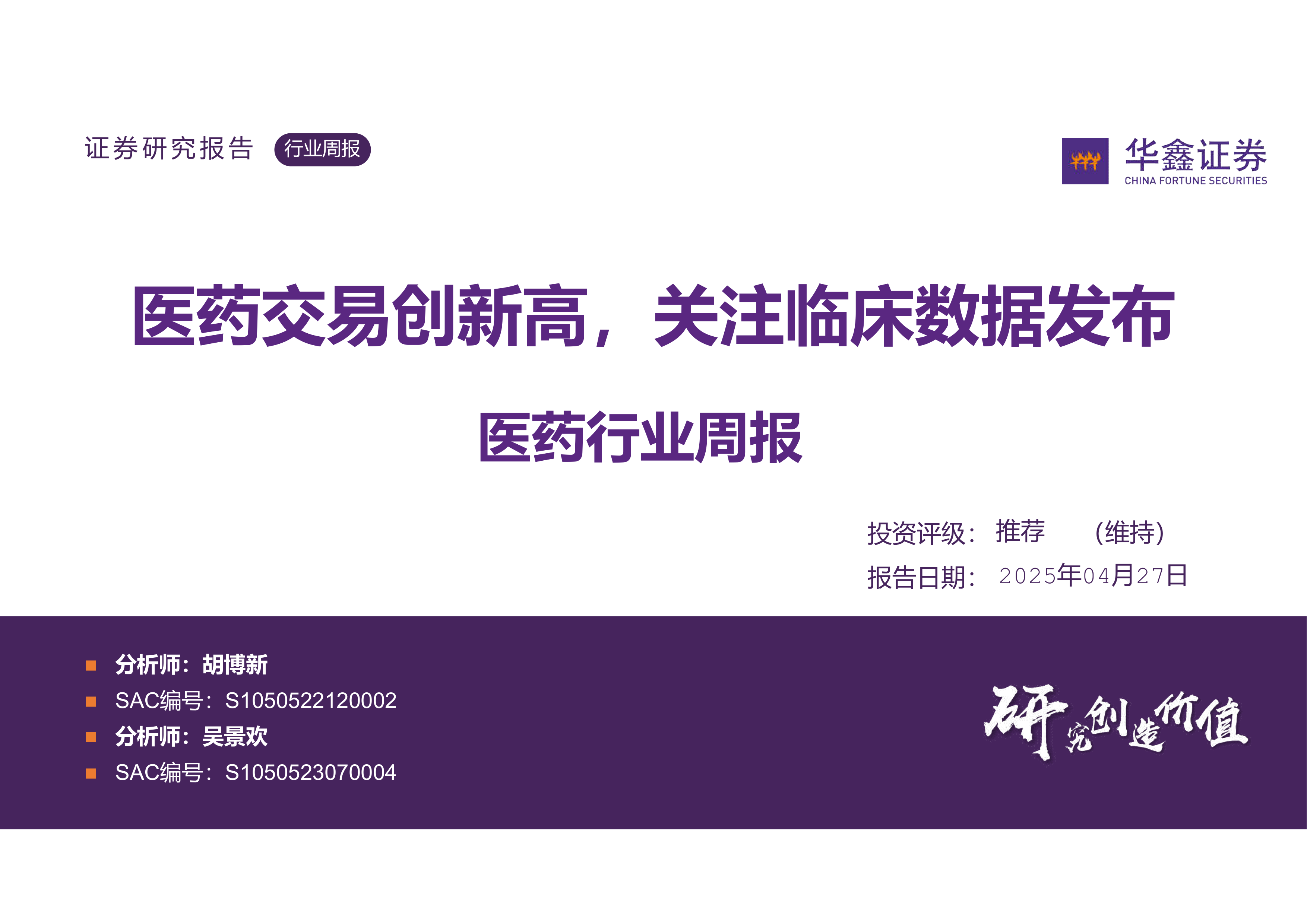 团队近期研究成果: 报告列出了华鑫医药团队近期发布的研究报告和点评报告,涵盖了多个医药细分领域。