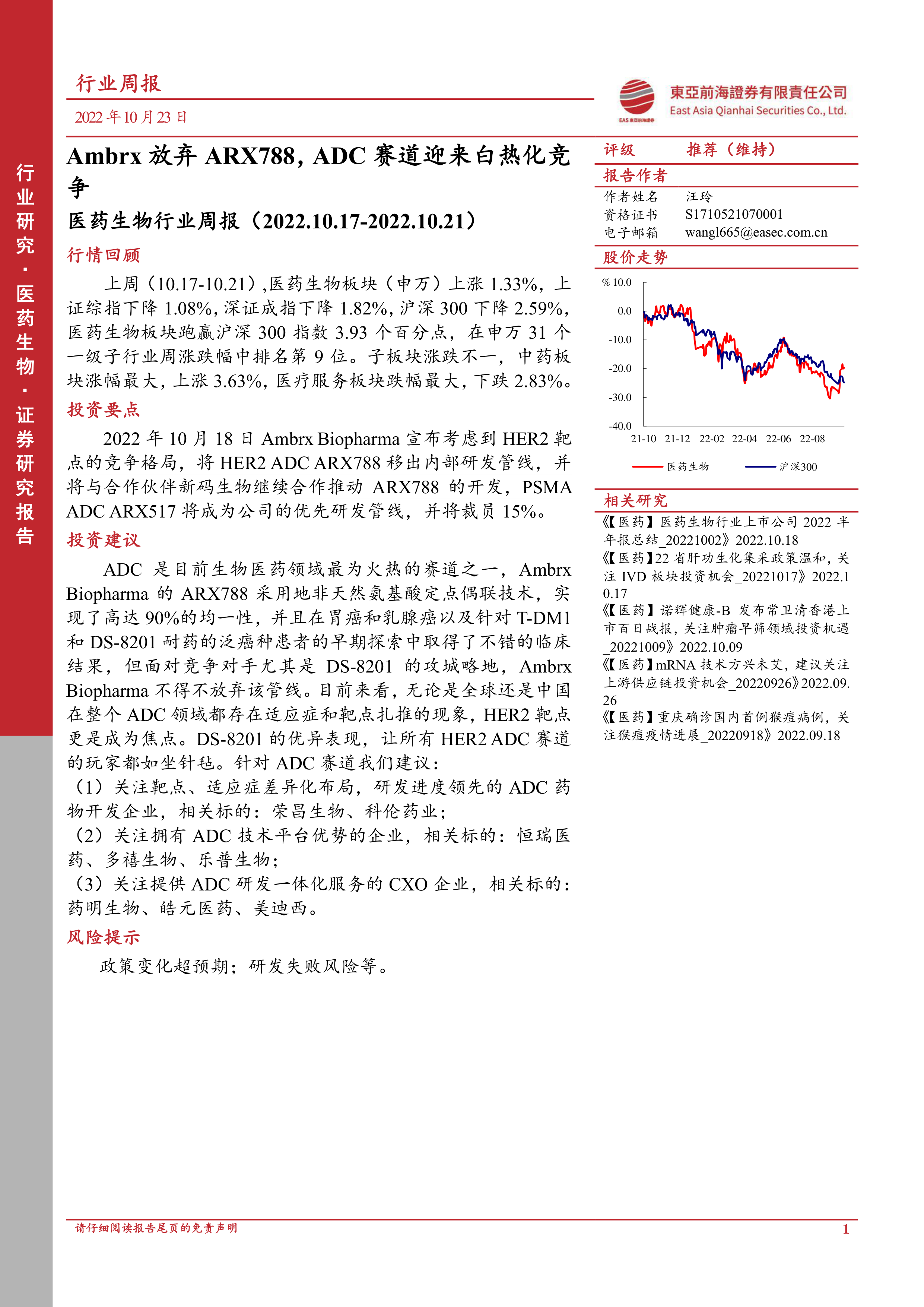 医药生物行业周报:Ambrx放弃ARX788,ADC赛道迎来白热化竞争