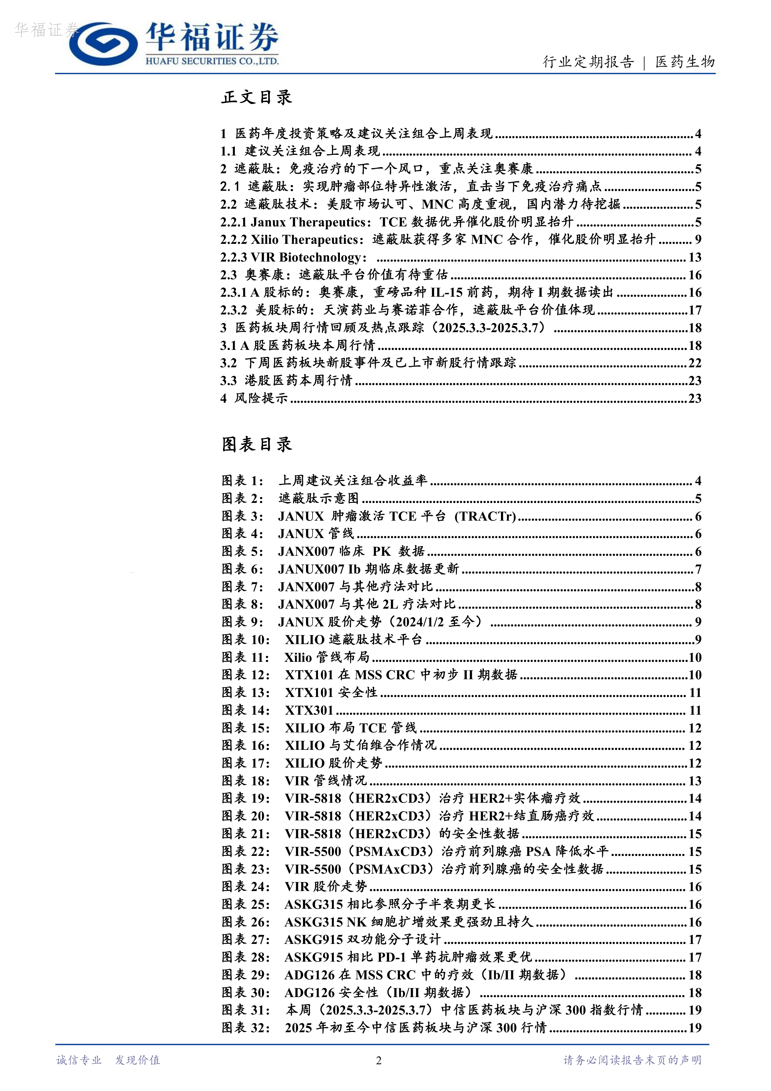 遮蔽肽技术可实现肿瘤部位特异性激活,直击当下免疫治疗痛点,降低毒副作用,提升疗效。美股市场、MNC均重视遮蔽肽技术价值,国内重点关注奥赛康遮蔽肽平台价值及管线进展。JANUX早期管线数据优异,美股市场反应火爆:JANX007在晚期或转移性前列腺癌的Ib临床中5L治疗效果优于部分现有2L疗法(包括Pluvicto),且剂量爬坡超过原TCE最高预期剂量,潜力巨大。Xilio就遮蔽肽技术与艾伯维达成合作,合作金额超21亿美元。2025年2月,双方宣布达成合作,引进Xilio的ATACR屏蔽肽技术平台,开发多个新型实体瘤TCE三抗药物。VIR遮蔽肽TCE疗效明显:2025年1月,VIR公布VIR-5818(HER2xCD3)和VIR-5500(PSMAxCD3)在实体瘤中的最新临床数据,受到美股市场认可。天演药业(美股上市):遮蔽技术独家授权给赛诺菲,总金额超过25亿美元。我们重点推荐关注:奥赛康。