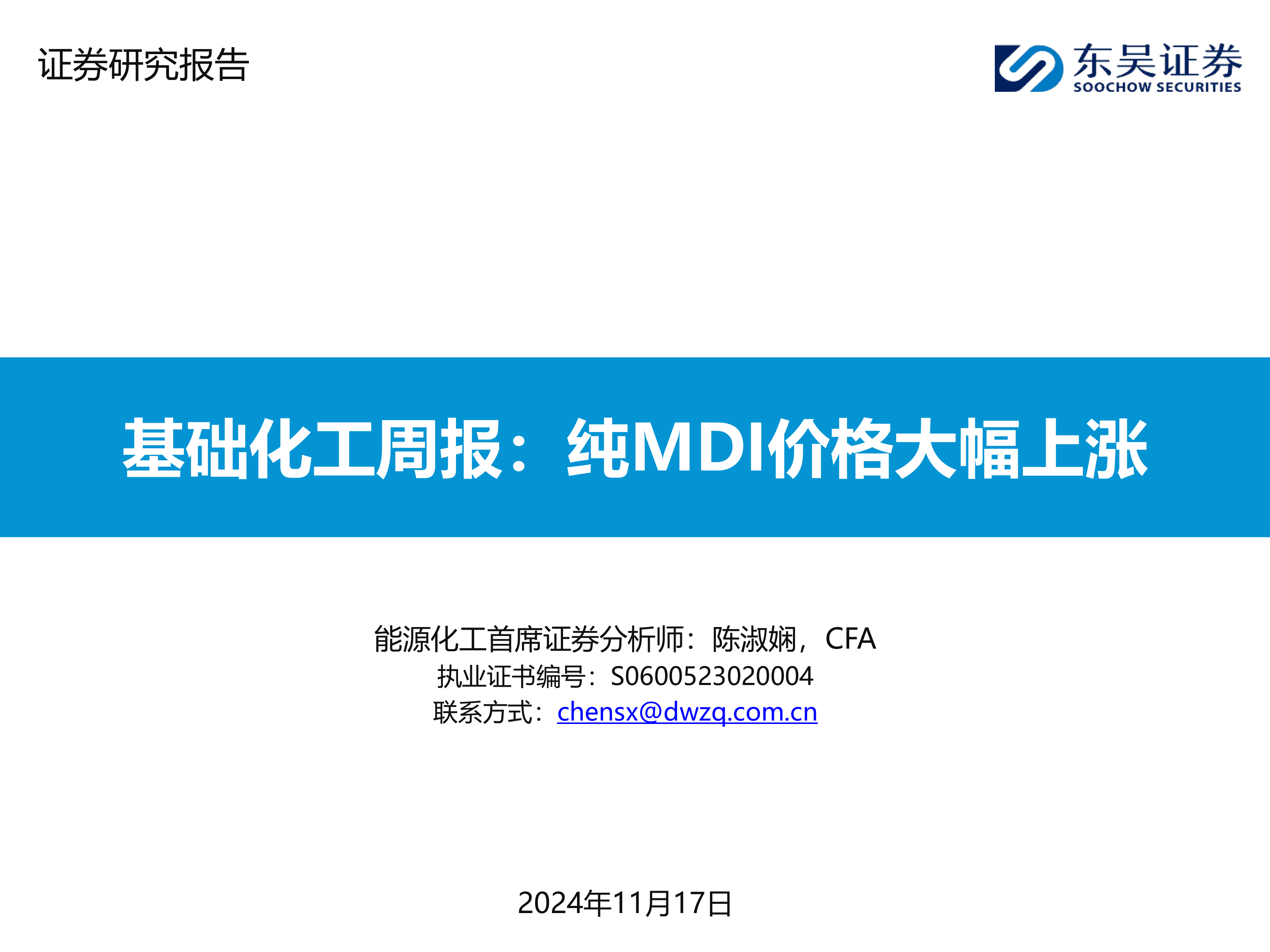 本报告主要涵盖基础化工行业周度数据简报,以及对聚氨酯、油煤气烯烃和煤化工三个板块的详细分析。