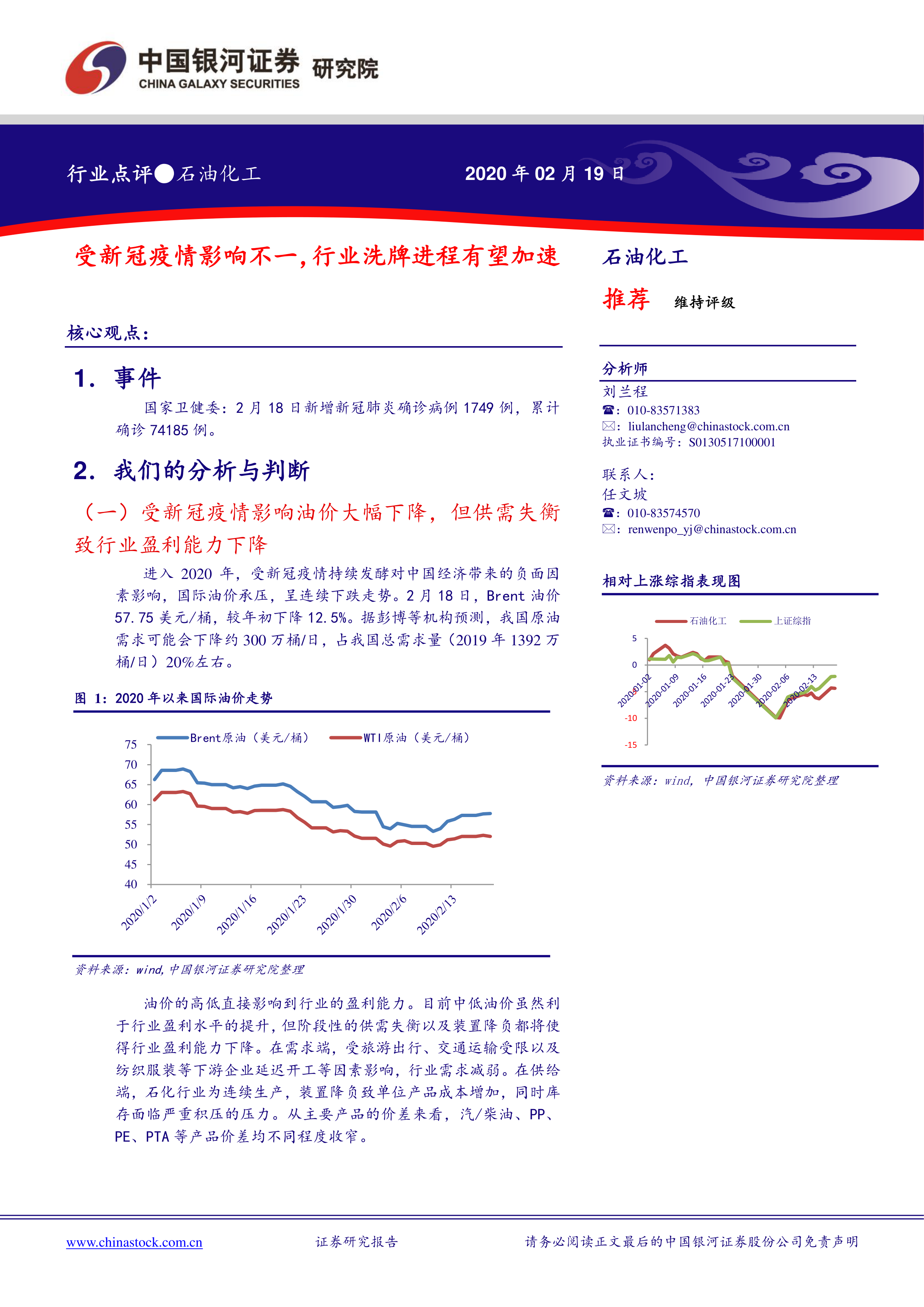 石油化工:受新冠疫情影响不一,行业洗牌进程有望加速