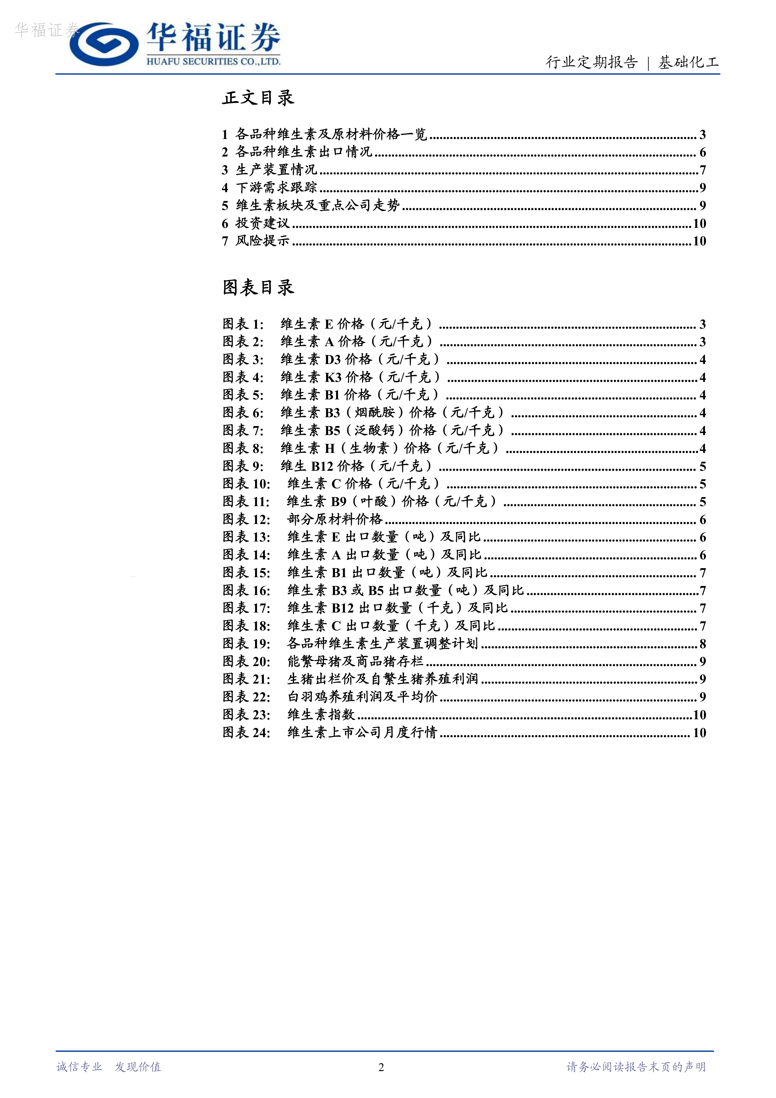报告最后给出了投资建议,建议关注受益于维生素A、E、D3及叶酸涨价的相关上市公司(浙江医药、新和成、花园生物、圣达生物、天新药业),并提示了需求不及预期、企业不可抗力及原材料价格大幅上涨等风险。