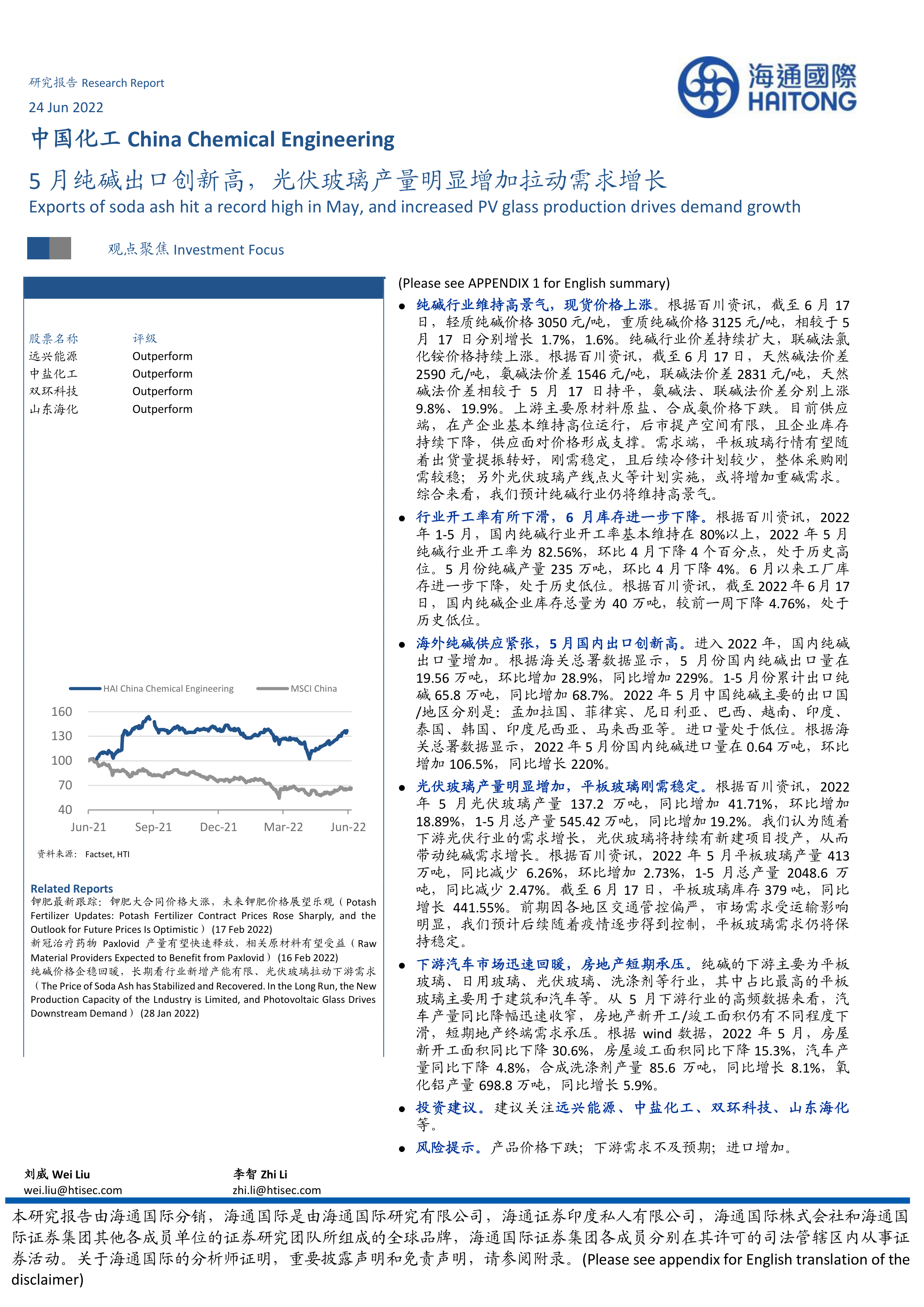 中国化工:5月纯碱出口创新高,光伏玻璃产量明显增加拉动需求增长