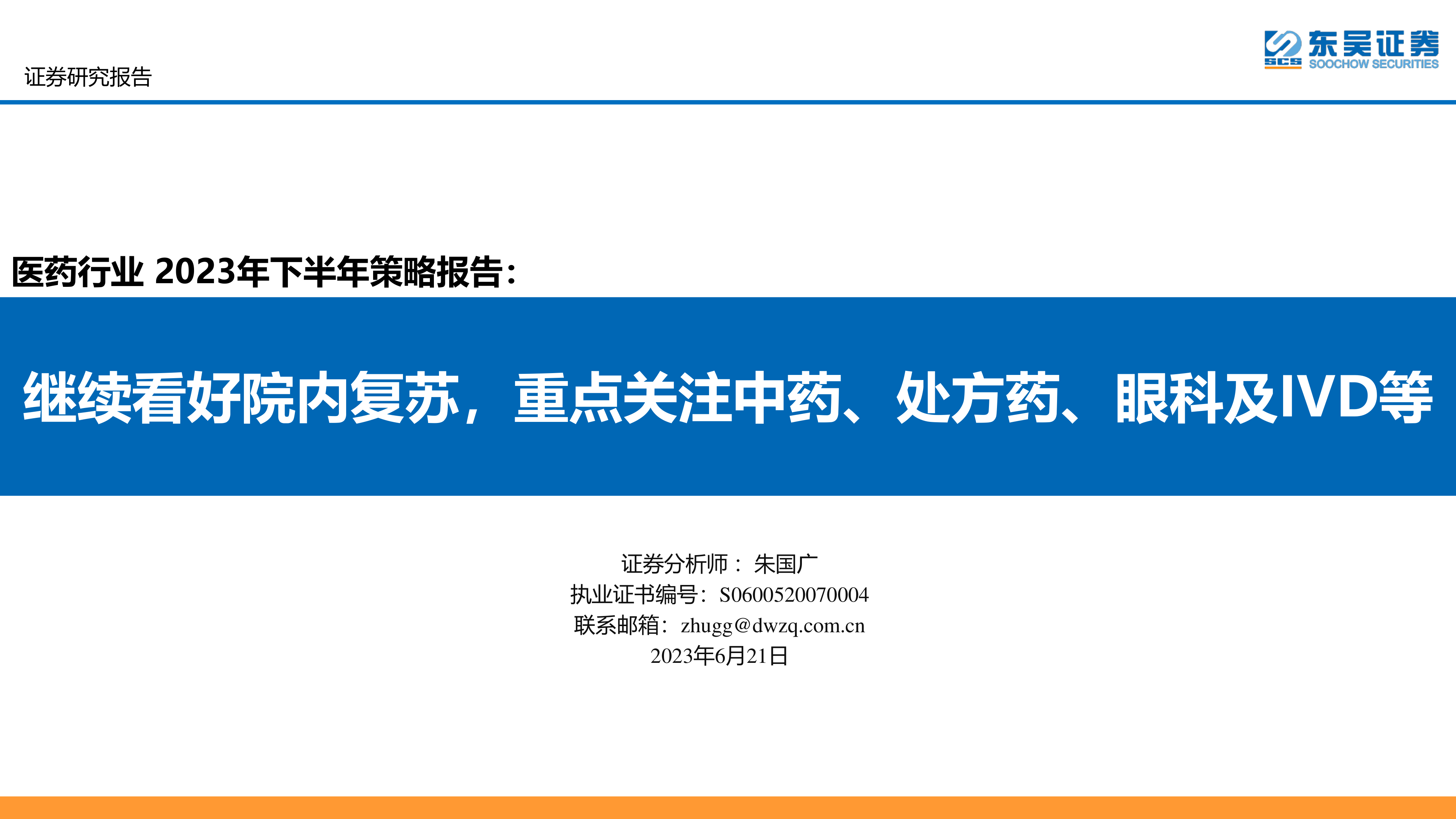 医药行业2023年下半年策略报告:继续看好院内复苏,重点关注中药、处方药、眼科及IVD等