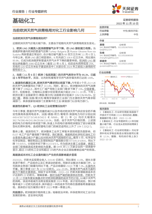 基础化工行业专题研究:当前欧洲天然气供需格局对化工行业影响几何