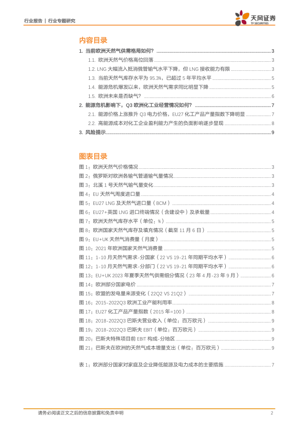 风险提示:欧洲能源价格持续上涨;地缘政治冲突;环保政策对化工业行业发展的影响;逆全球化风险