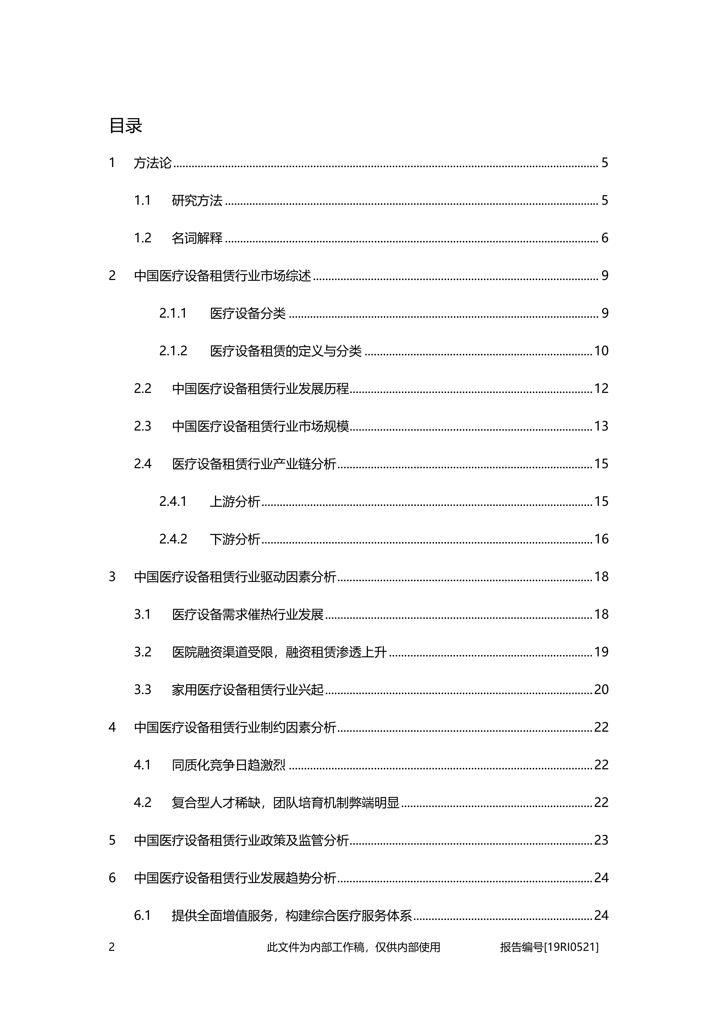 本节详细介绍了中国医疗设备租赁行业的市场概况,包括医疗设备的分类、租赁方式的分类、行业发展历程以及产业链分析。 报告指出,中国医疗设备租赁行业起步较晚,经历了起步、探索和规范发展三个阶段。目前,市场竞争日益激烈,企业数量众多,但同质化竞争现象严重。