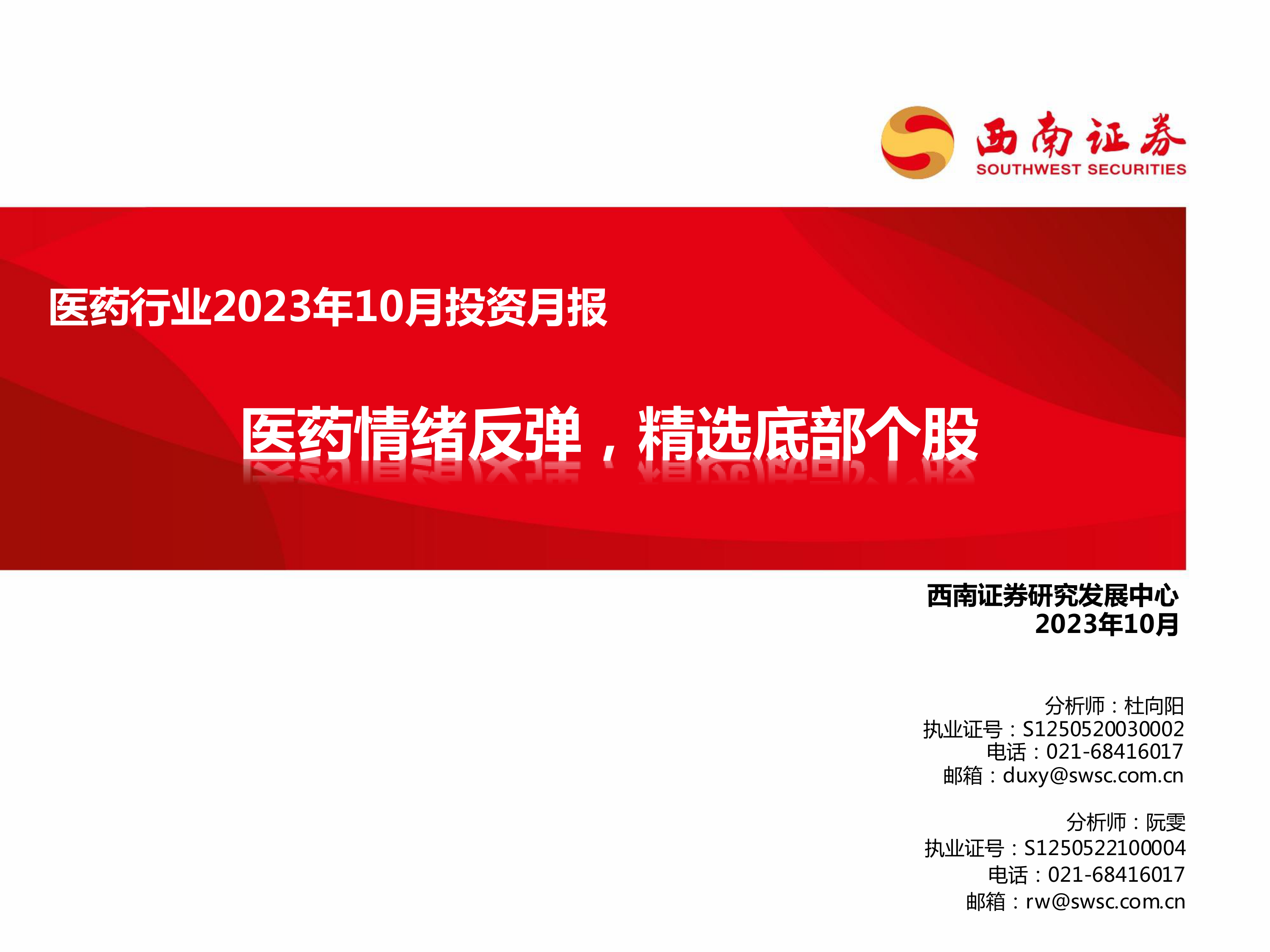 医药行业2023年10月投资月报:医药情绪反弹,精选底部个股