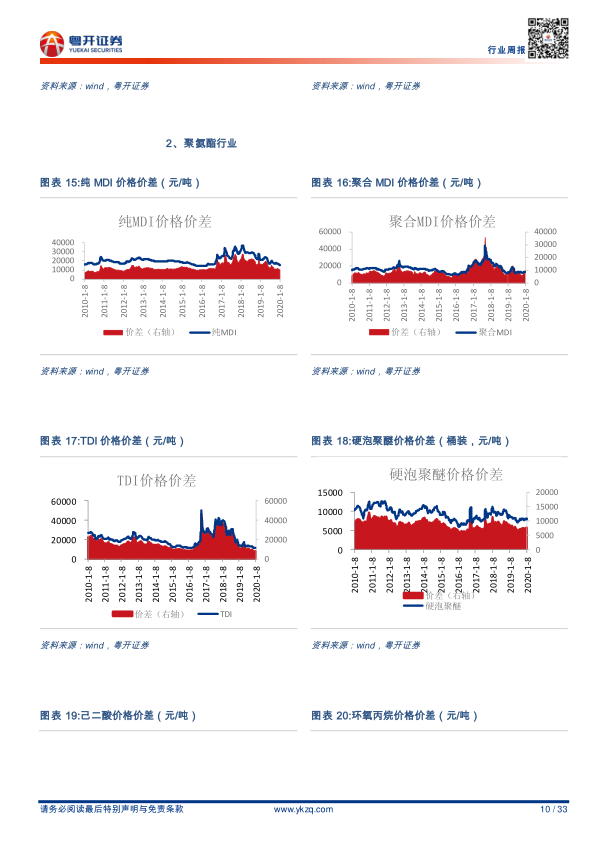 报告对多个化工细分领域的价格走势进行了详细的图表分析,包括: