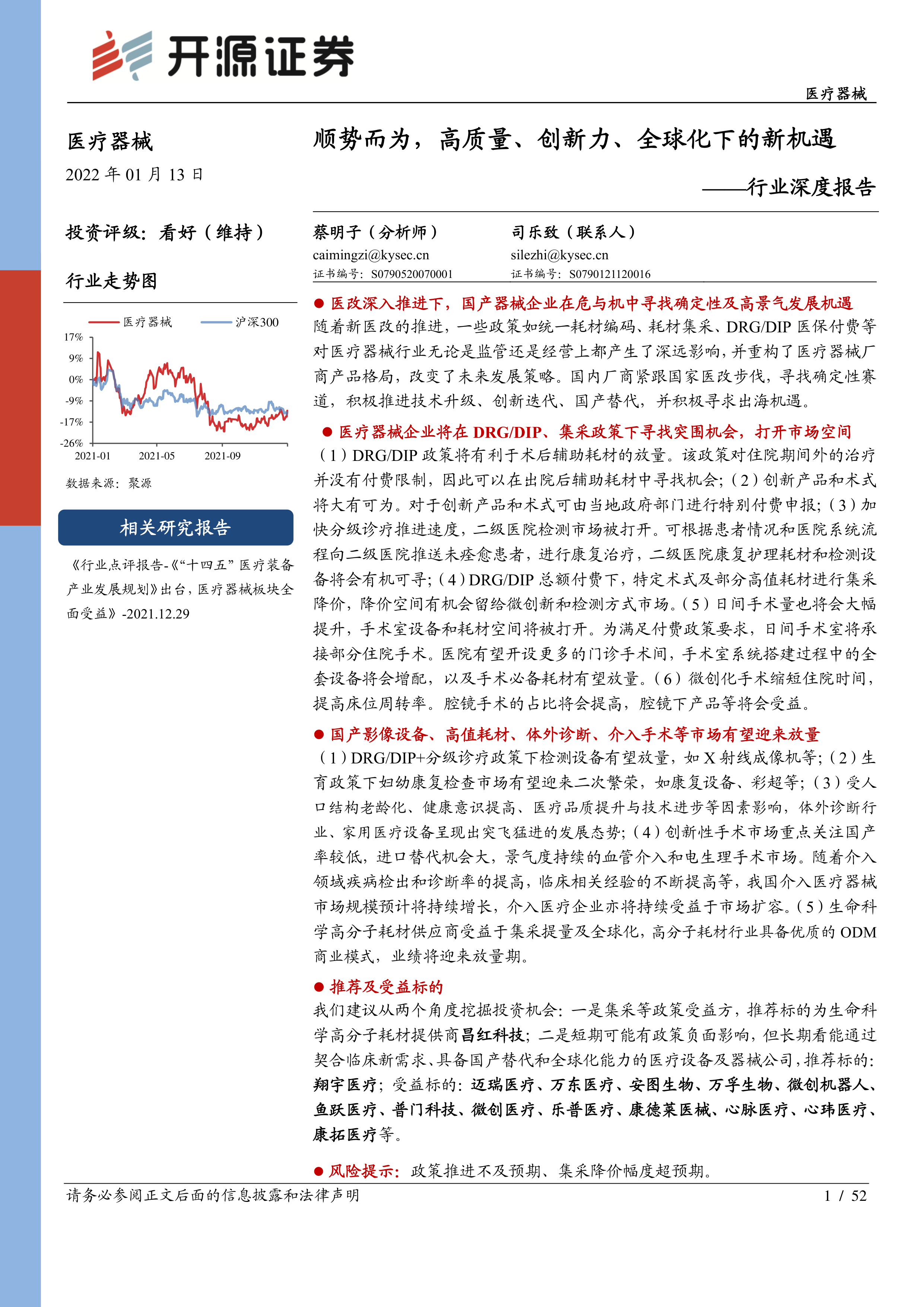 医疗器械行业深度报告:顺势而为,高质量、创新力、全球化下的新机遇