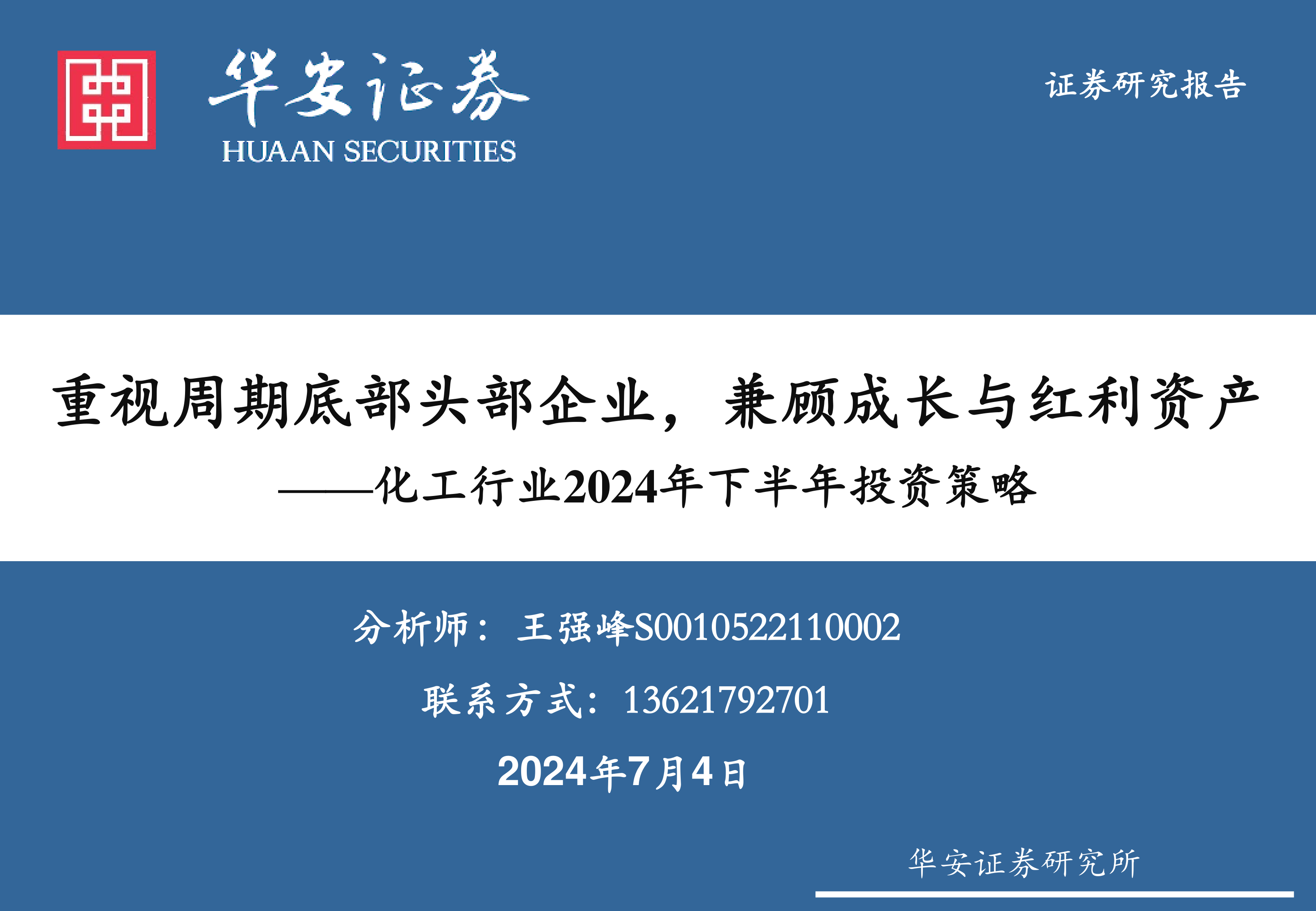 化工行业2024年下半年投资策略:重视周期底部头部企业,兼顾成长与红利资产