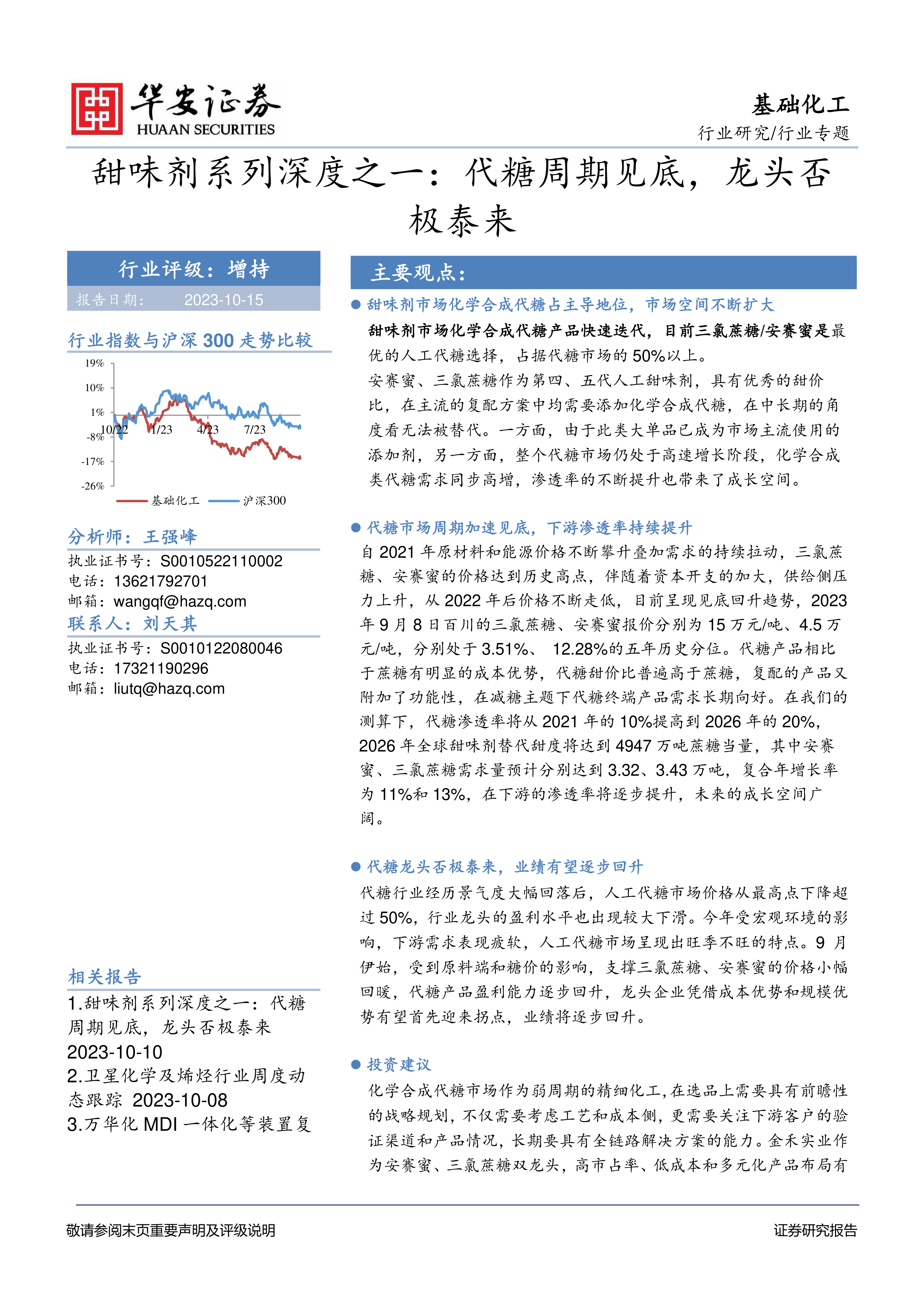 本报告从代糖市场发展现状、化学合成代糖的成本优势、2026年下游需求测算以及行业估值与重点公司四个方面展开分析。