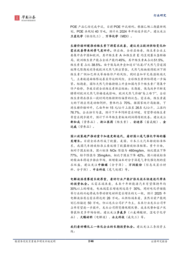 我们看好磷化工一体化企业的长期投资机会。建议关注三条投资主线: