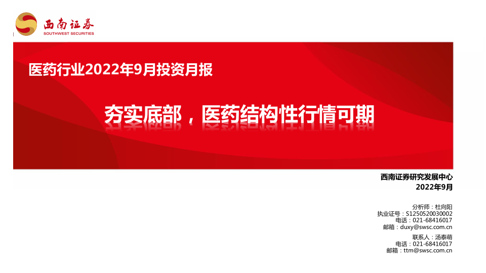 医药行业2022年9月投资月报:夯实底部,医药结构性行情可期