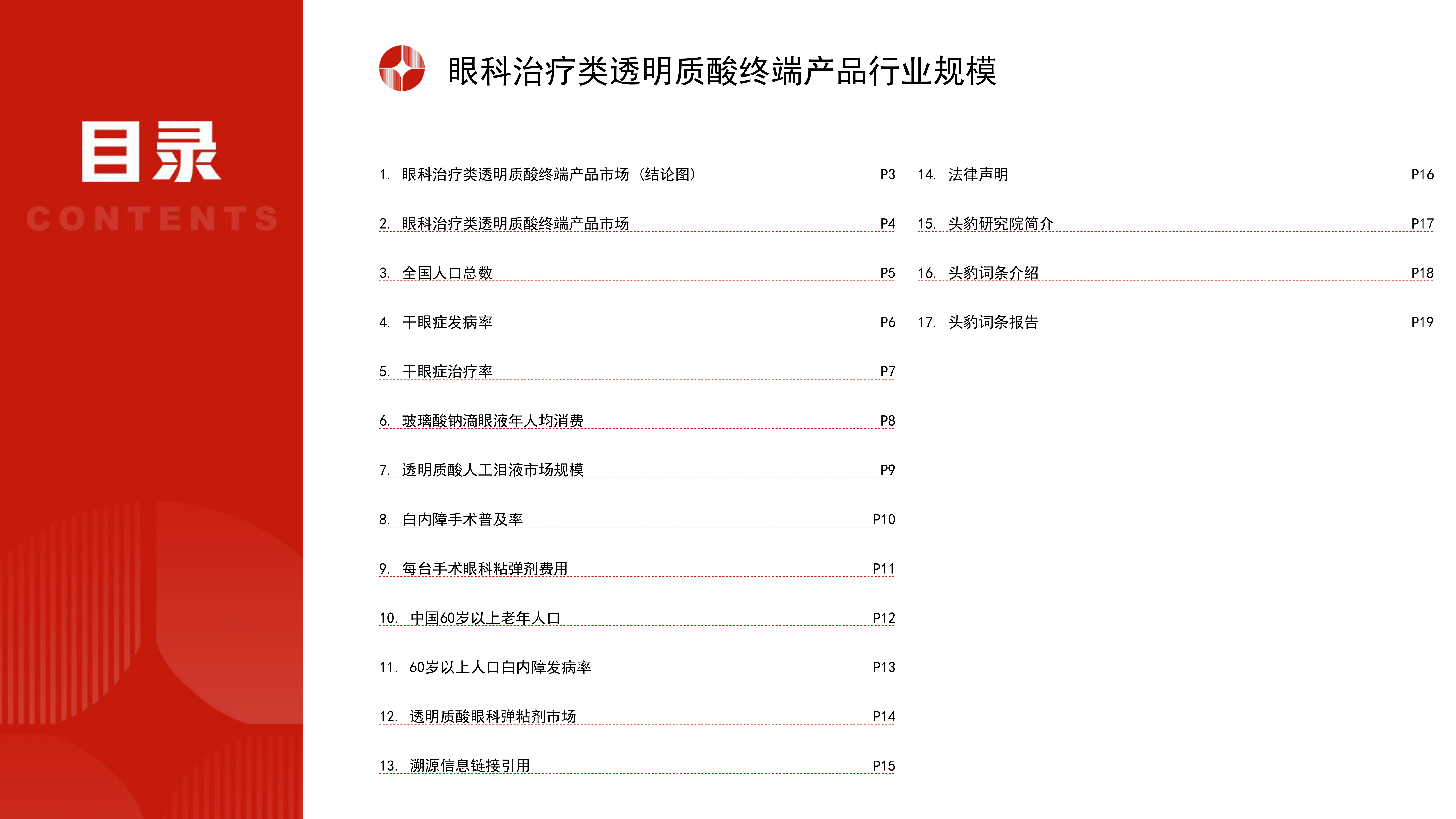 本报告基于头豹研究院发布的《眼科治疗类透明质酸终端产品中国行业规模市场测算逻辑模型》报告,对中国眼科治疗类透明质酸终端产品市场进行数据分析和市场规模测算。报告核心观点如下: