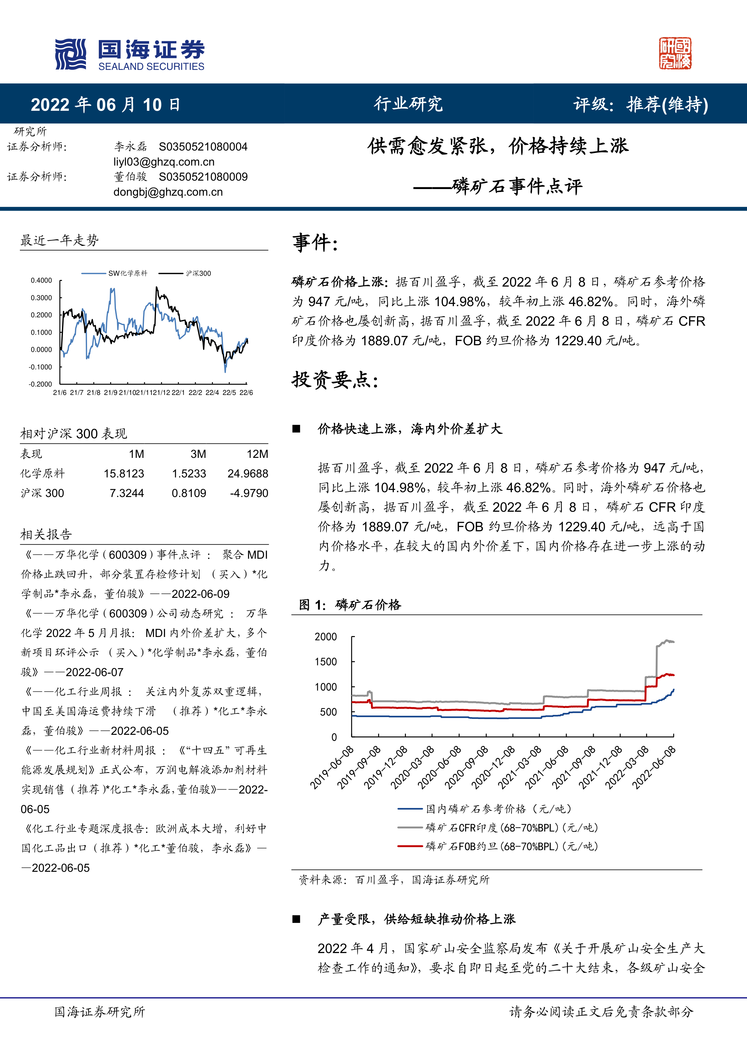 磷矿石事件点评:供需愈发紧张,价格持续上涨