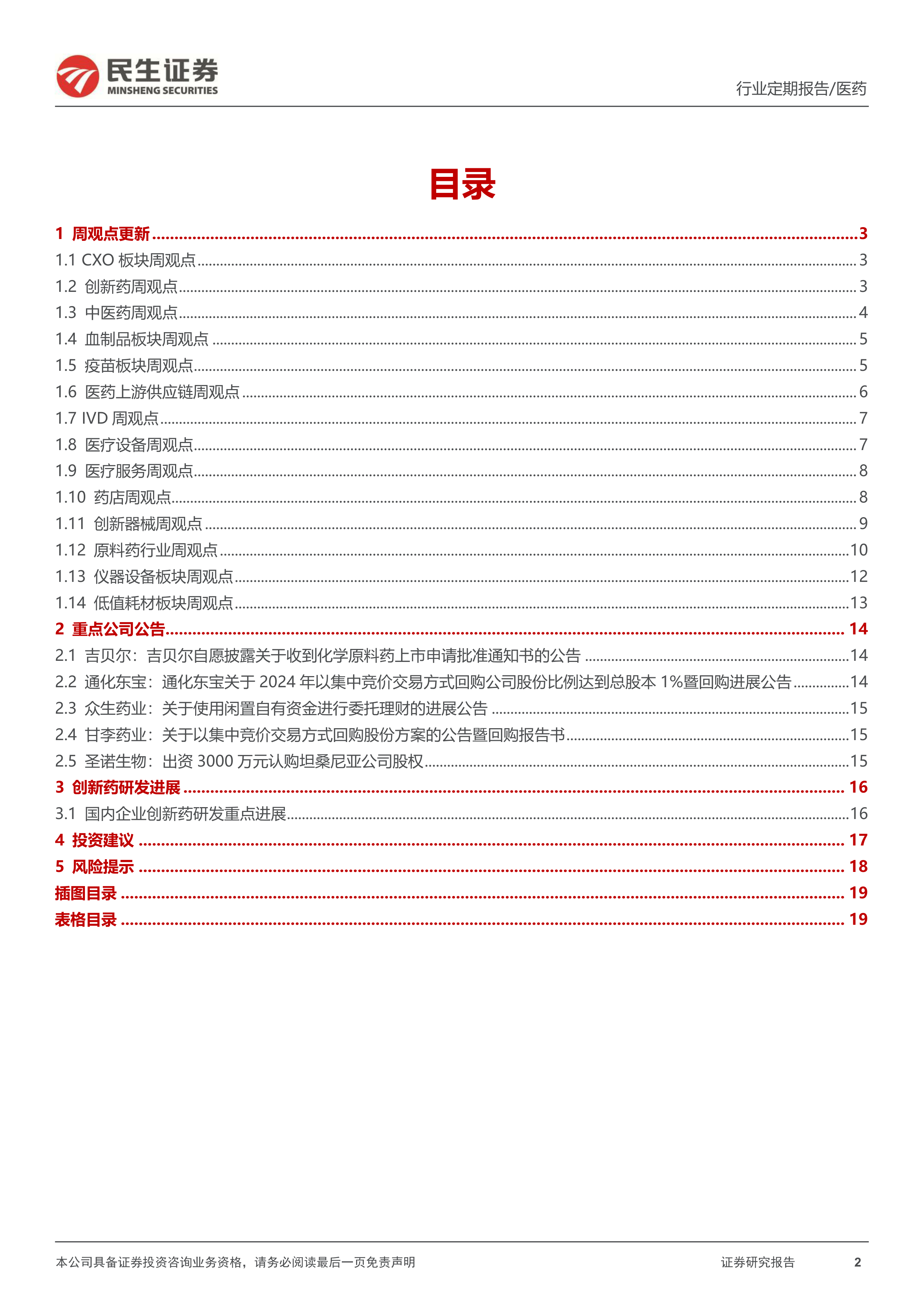 风险提示:集采压力大于预期风险;产品研发进度不及预期风险;竞争加剧风险;政策监管环境变化风险;药物研发服务市场需求下降的风险。