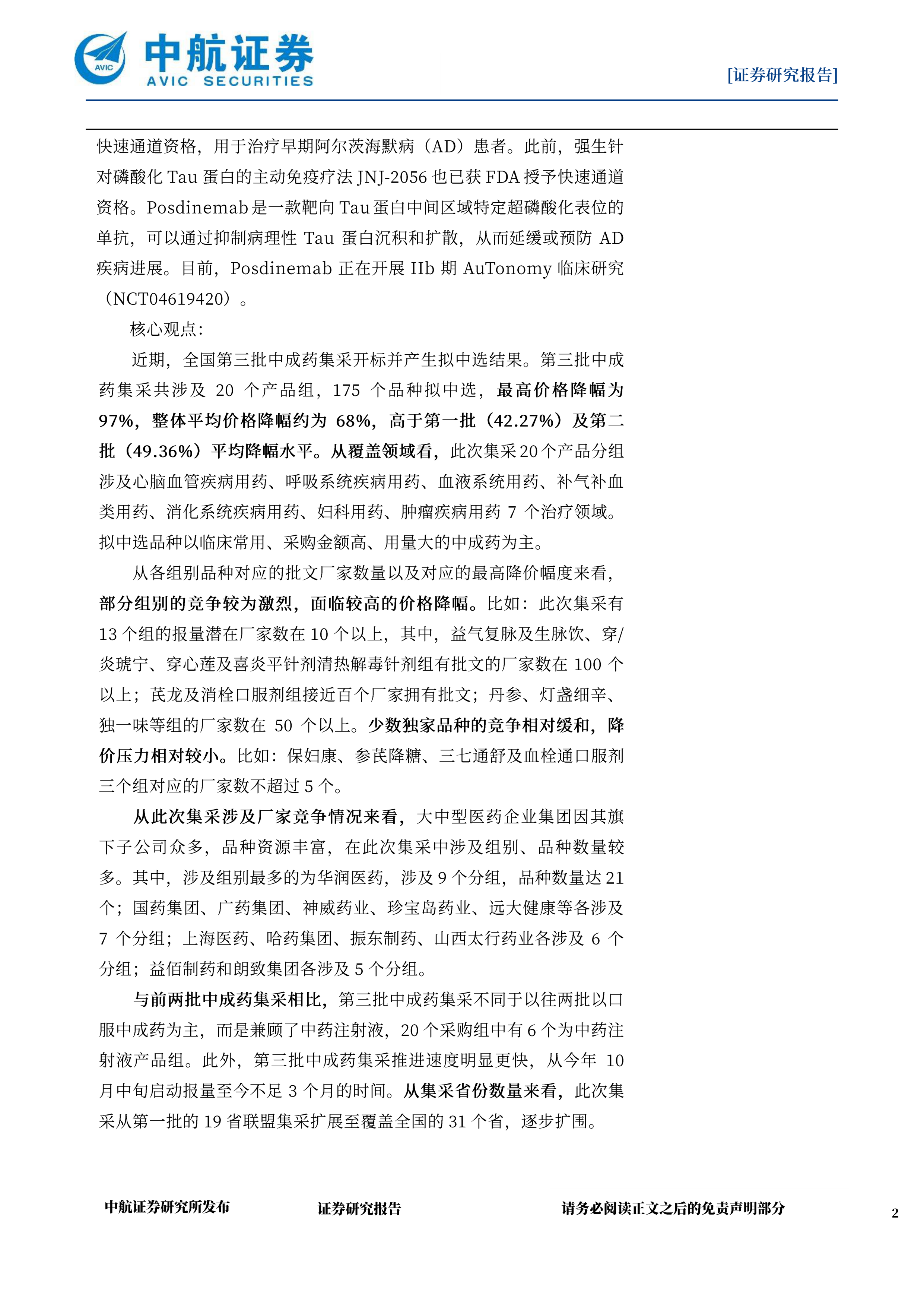 医药生物行业双周报:全国第三批中成药集采开标并产生拟中选结果