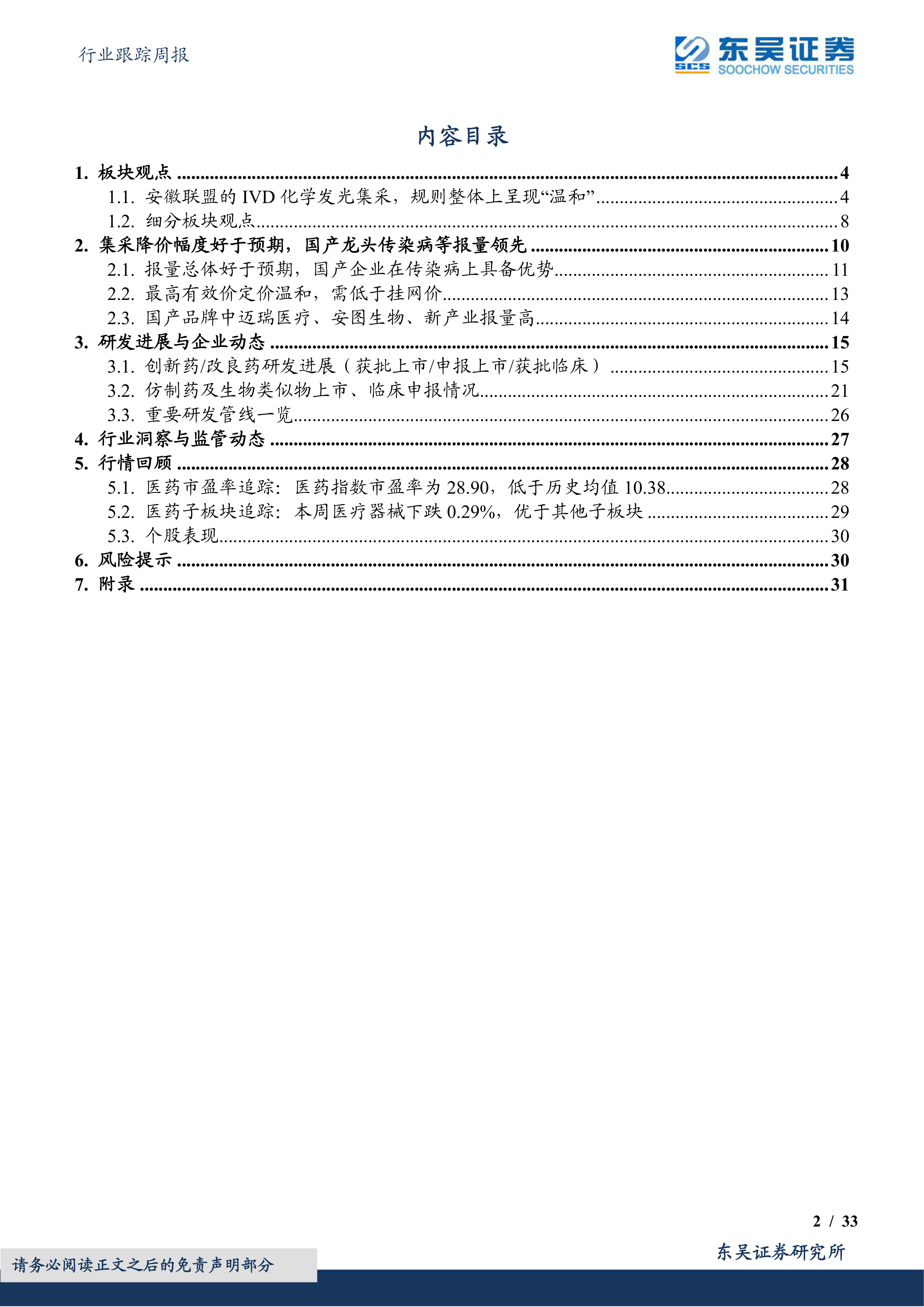 风险提示: 药品或耗材降价超预期;医保政策风险等。