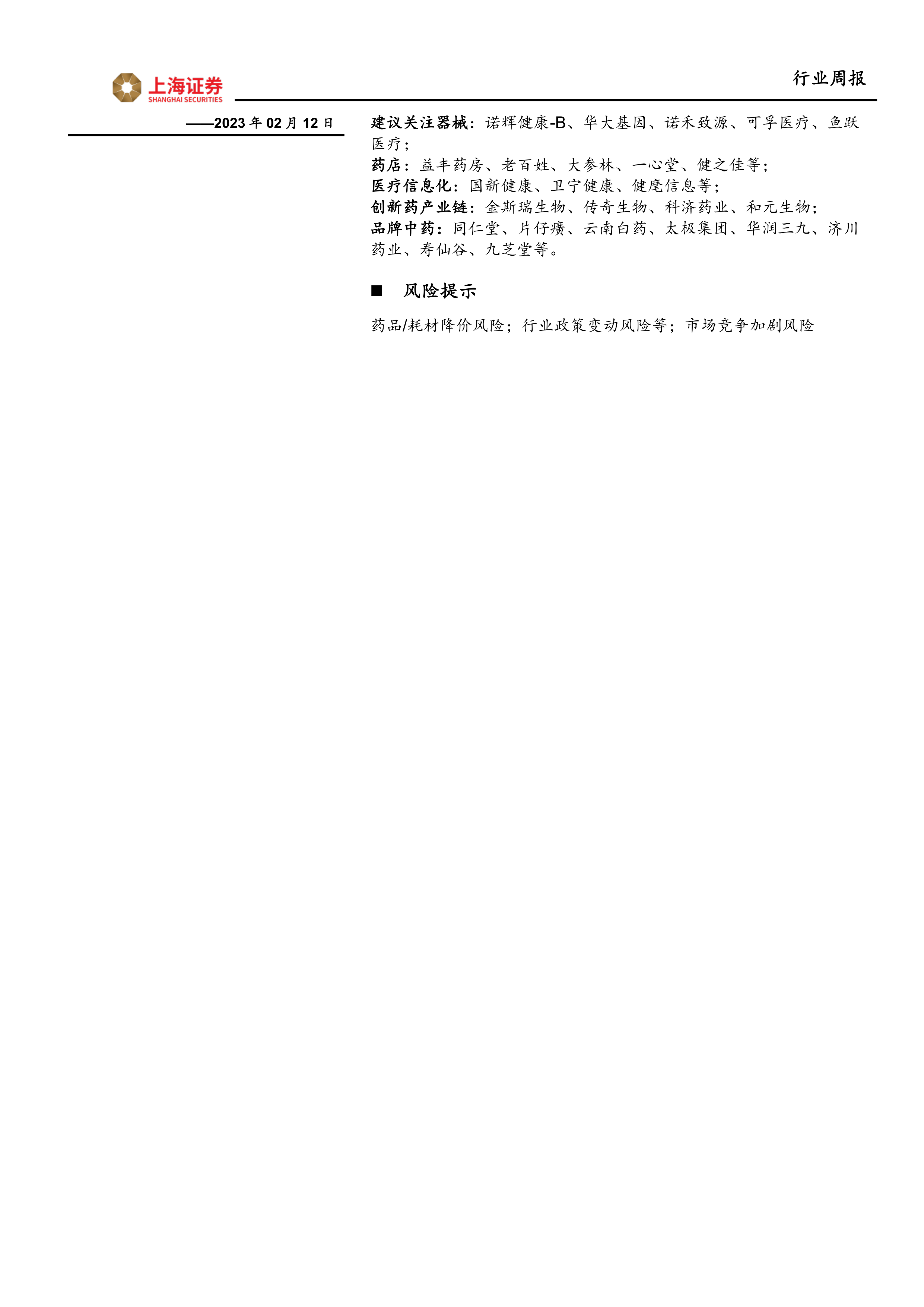 风险提示: 指出了药品/耗材降价风险、行业政策变动风险和市场竞争加剧风险。