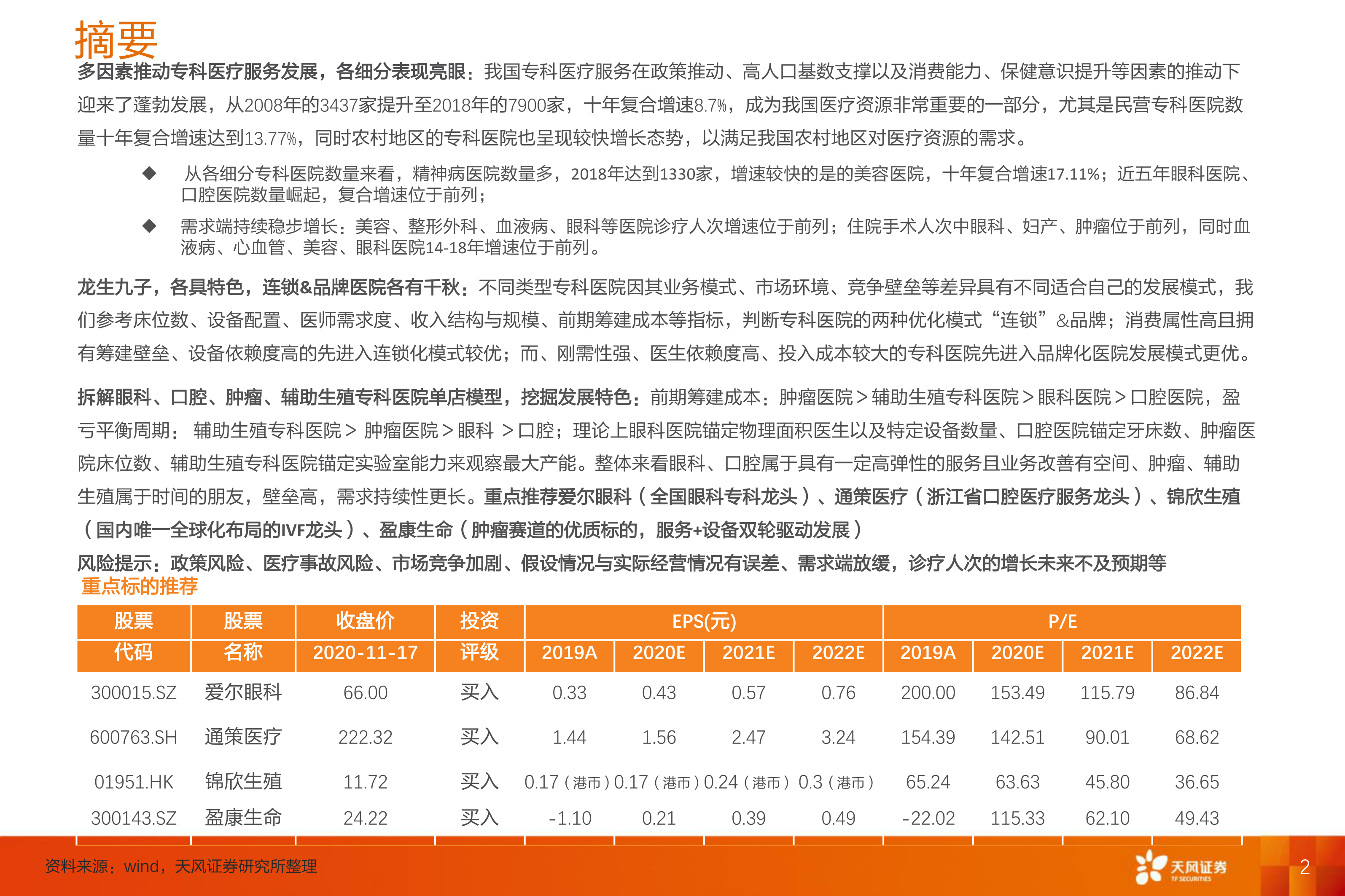 风险提示:政策风险、医疗事故风险、市场竞争加剧、假设情况与实际经营情况有误差、需求端放缓,诊疗人次的增长未来不及预期等