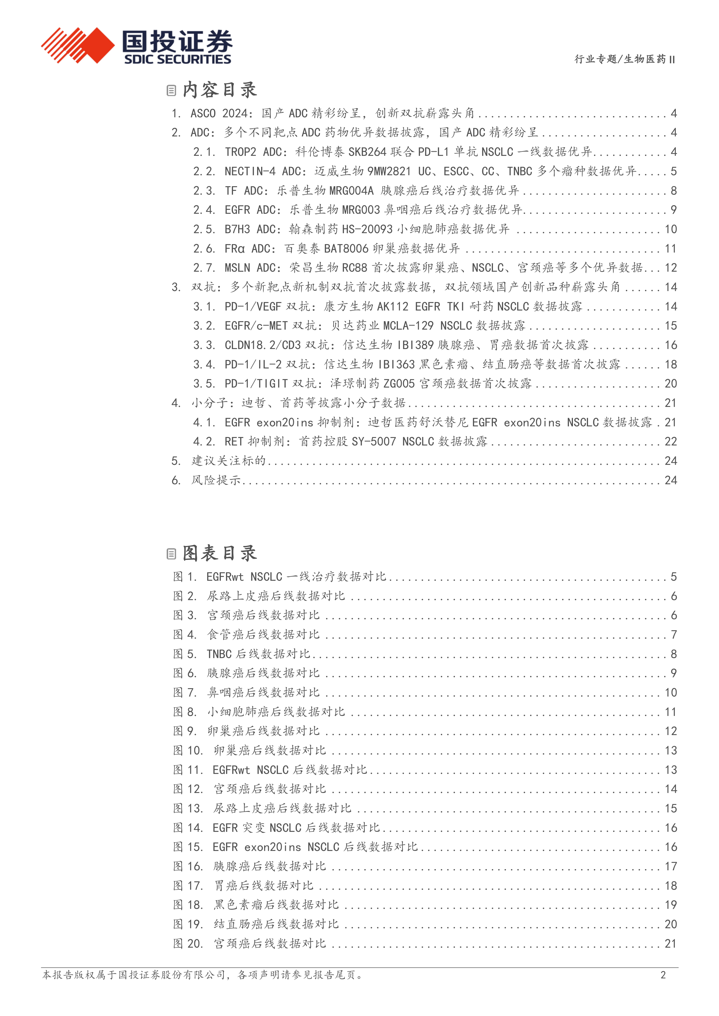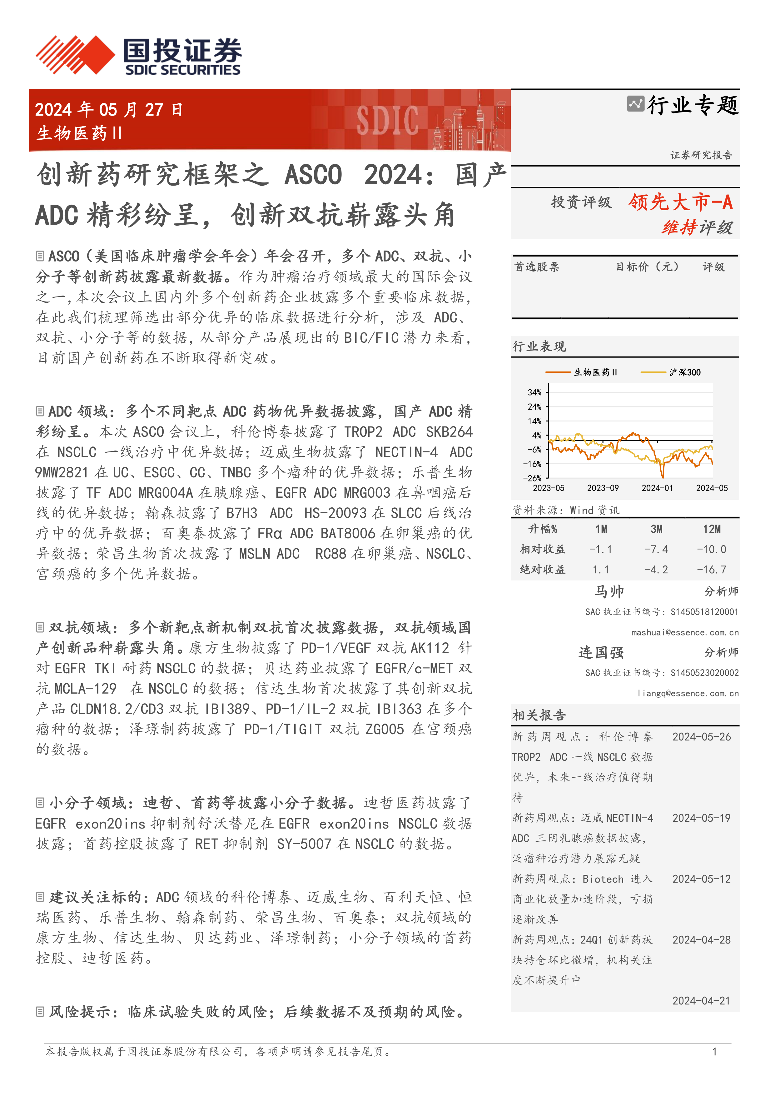本报告详细分析了ASCO 2024年会上披露的多个国产创新药的临床数据,涵盖ADC、双抗和小分子三大类药物。