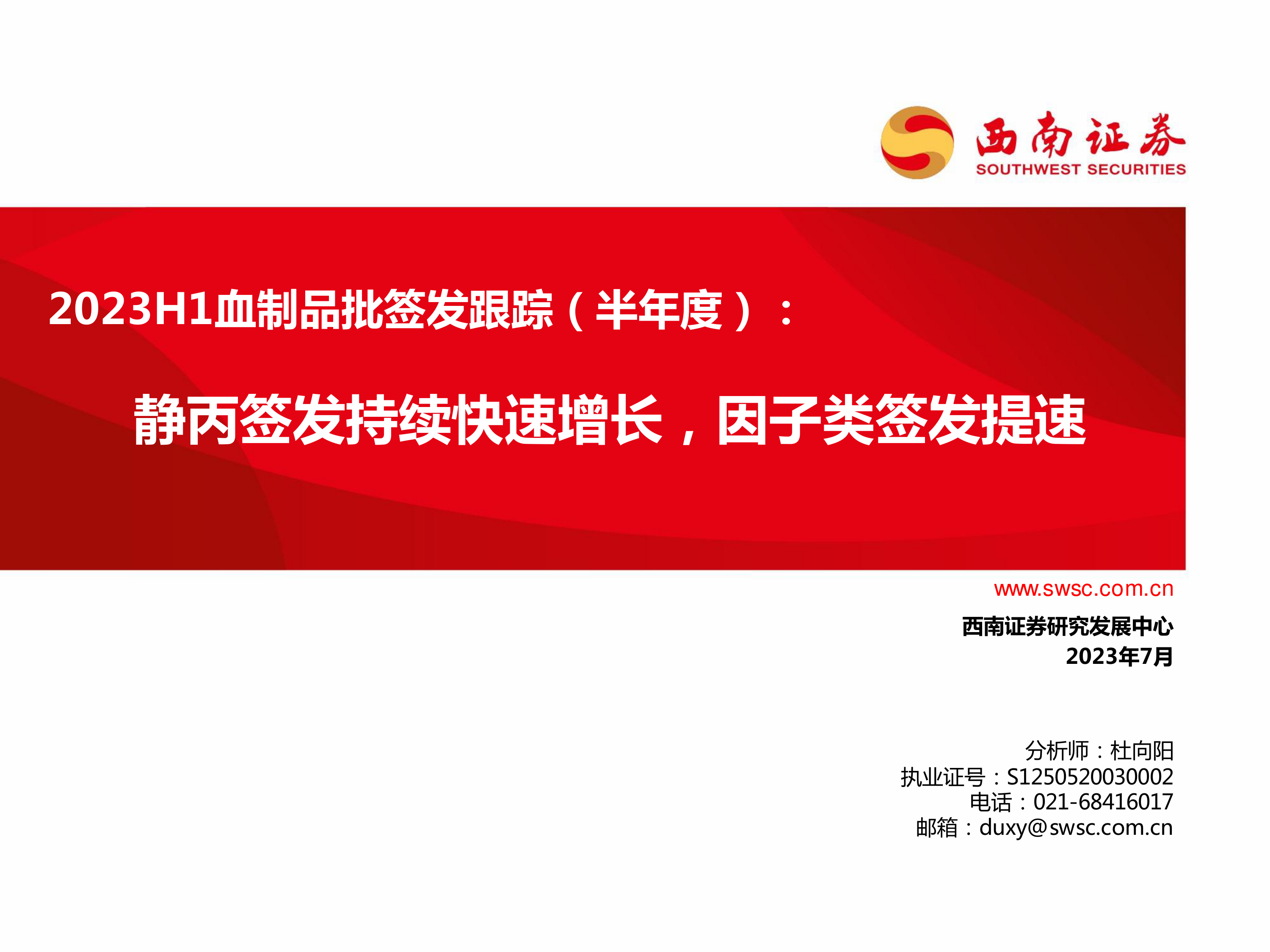 2023H1血制品批签发跟踪(半年度):静丙签发持续快速增长,因子类签发提速