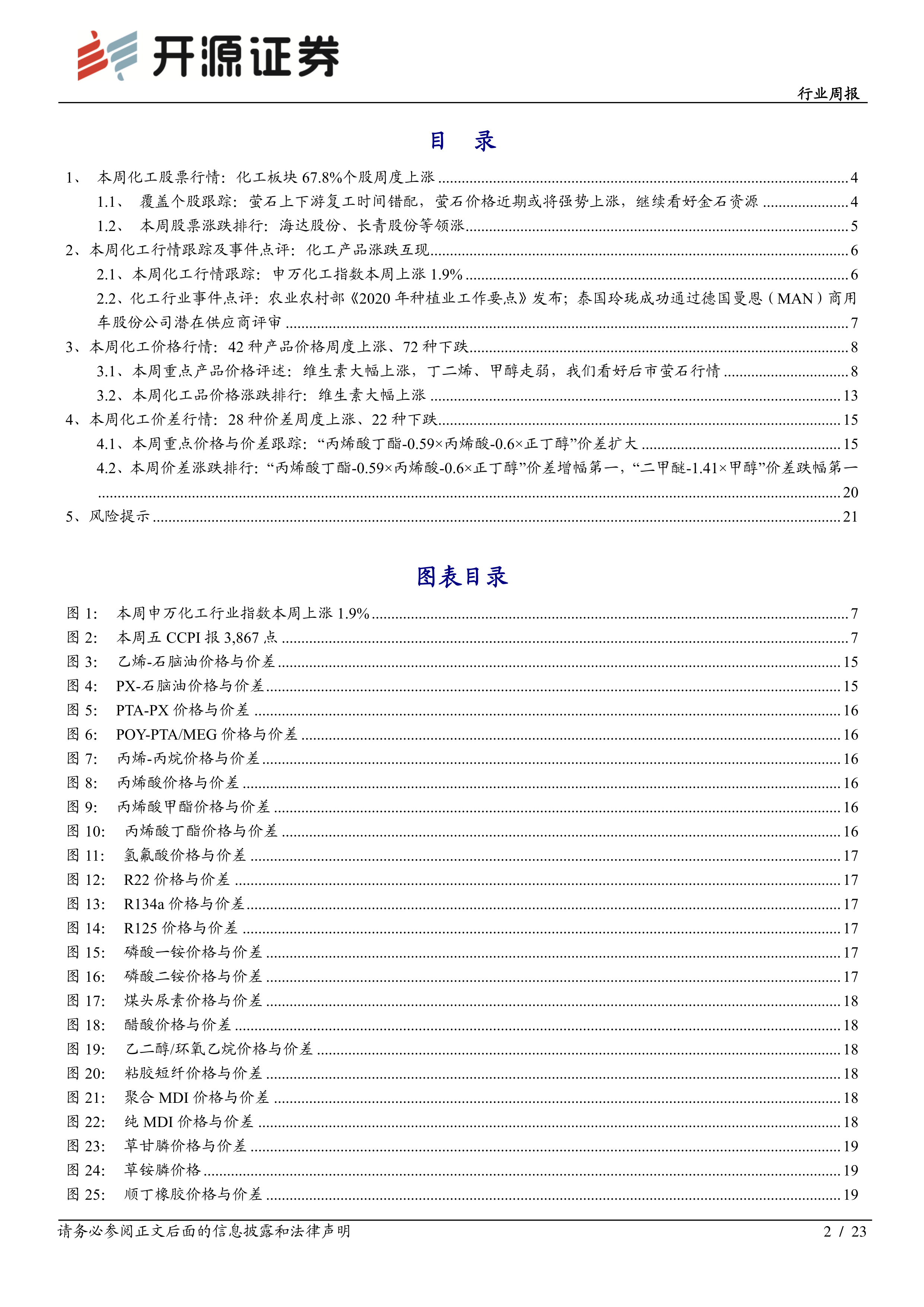 本报告以2020年2月15日发布的化工行业周报为基础,主要内容涵盖以下几个方面: