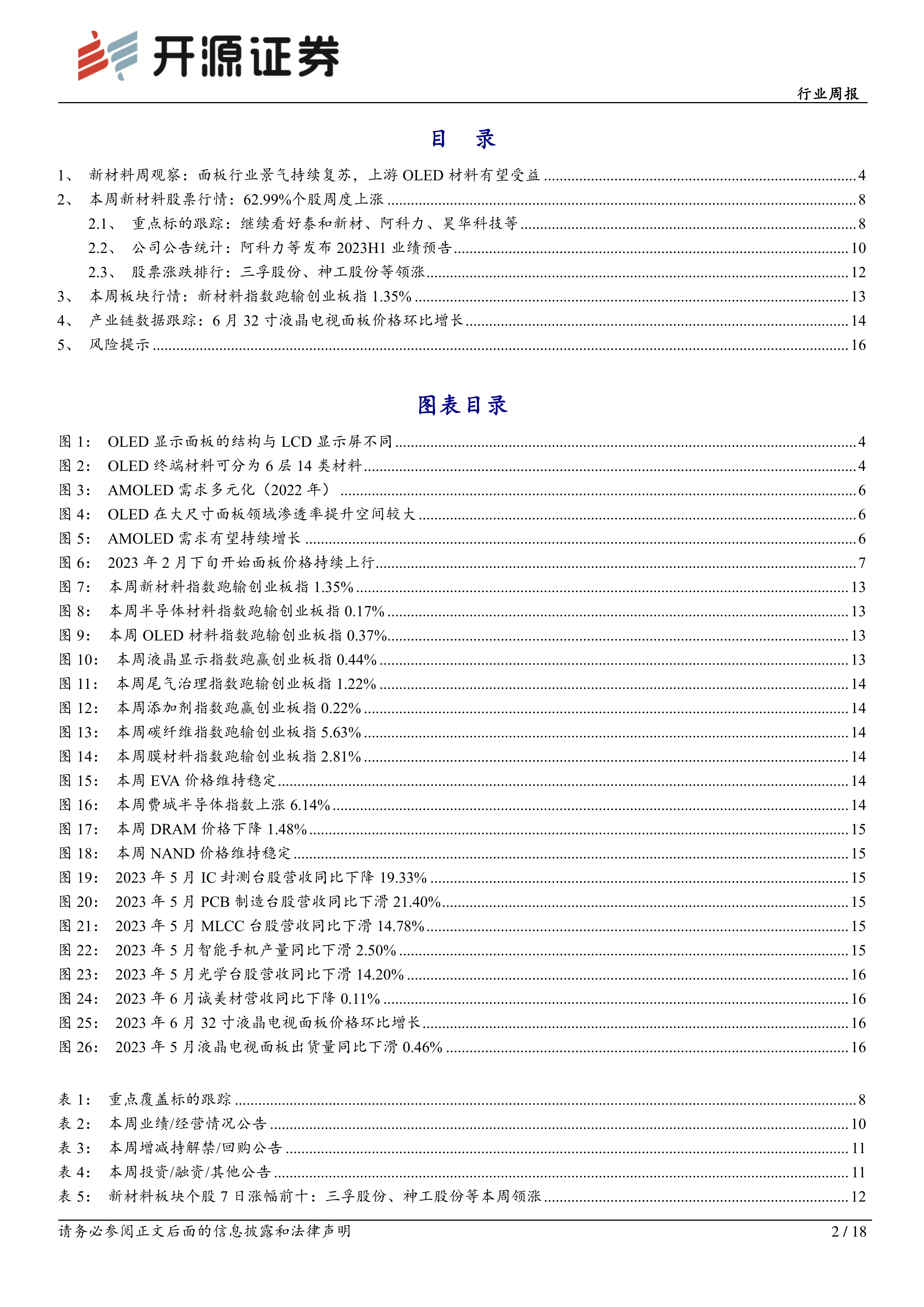 本报告通过对面板行业景气度、新材料股票行情、板块行情以及产业链数据的分析,得出面板行业景气度持续复苏,带动上游OLED材料需求增长的结论。 OLED材料市场前景广阔,相关企业有望受益。报告同时提示了投资风险,建议投资者在投资决策时谨慎考虑。 报告中对部分重点标的进行了深入分析,并给出了相应的投资评级,为投资者提供了参考依据。 然而,报告也指出,虽然OLED面板需求增长,但市场竞争依然激烈,技术突破的不确定性以及原材料价格波动等因素也可能影响相关企业的盈利能力。 因此,投资者需要对市场进行持续跟踪,并结合自身风险承受能力进行投资决策。