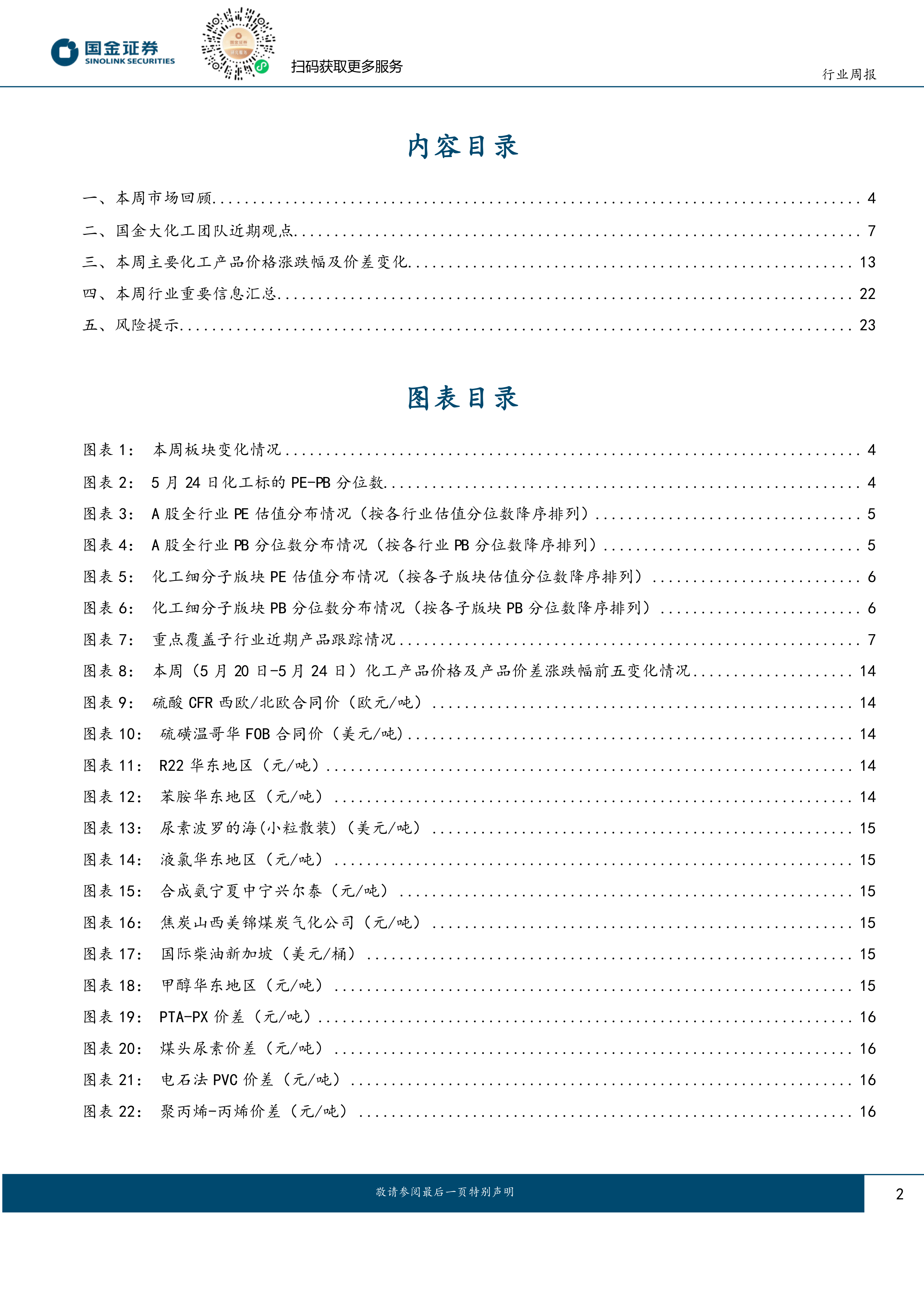 本报告对本周化工市场进行了全面的回顾和分析,涵盖了市场整体表现、行业边际变化、主要化工产品价格及价差变化以及行业重要信息等方面。报告数据显示,本周化工市场整体表现低迷,但部分细分领域表现较好,估值处于历史低位。行业边际变化方面,MDI产能减少,地产行业政策利好,电子行业存在风险,AI行业景气度提升。投资建议关注化工龙头、全球格局重构的化工品种和出海标的,同时需关注国内外需求下滑、原油价格波动和国际政策变动等风险。 报告中大量图表数据为分析提供了有力支撑,内容专业、分析透彻,为投资者提供了有价值的参考信息。