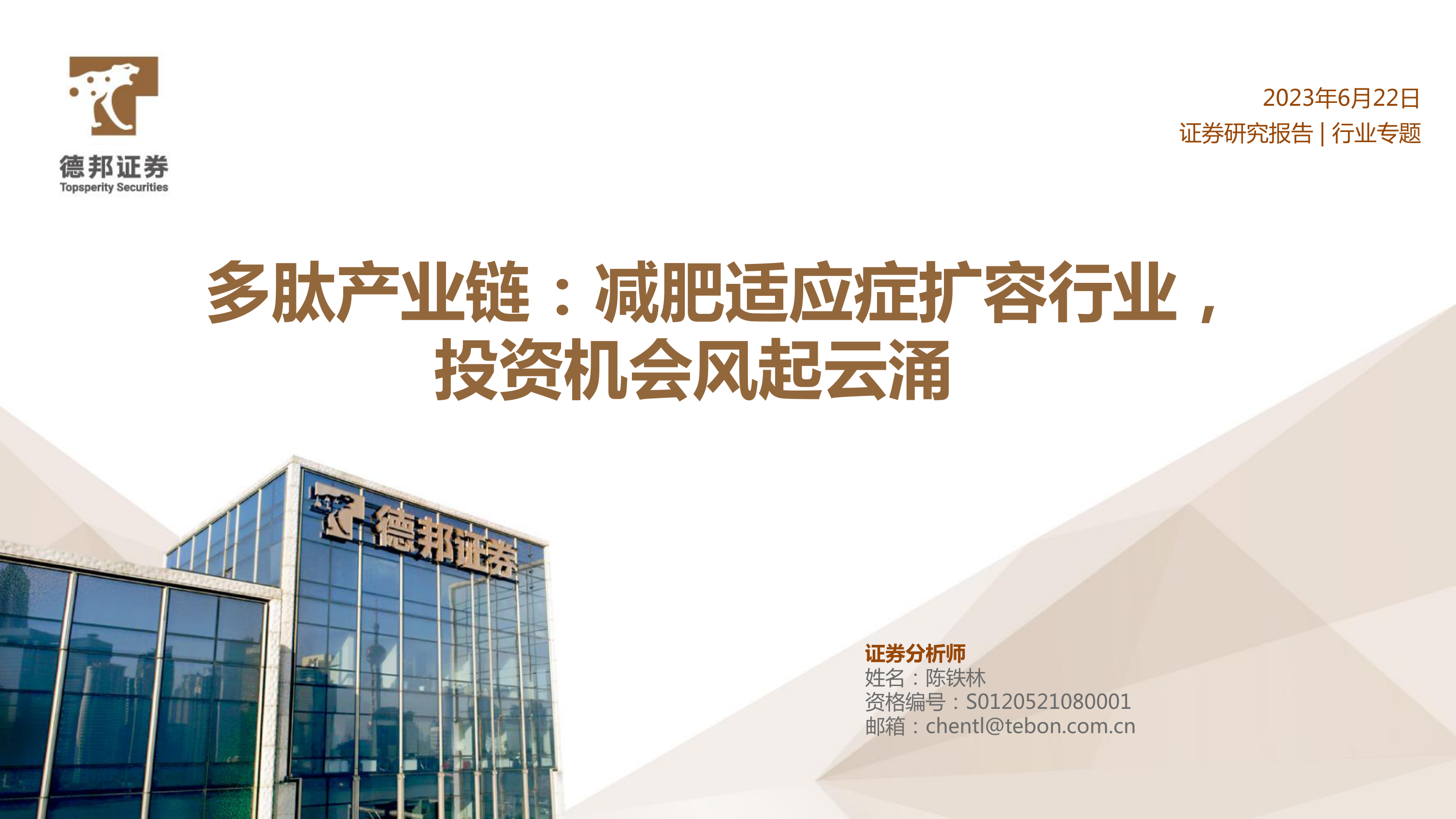 医药生物行业专题:多肽产业链:减肥适应症扩容行业,投资机会风起云涌