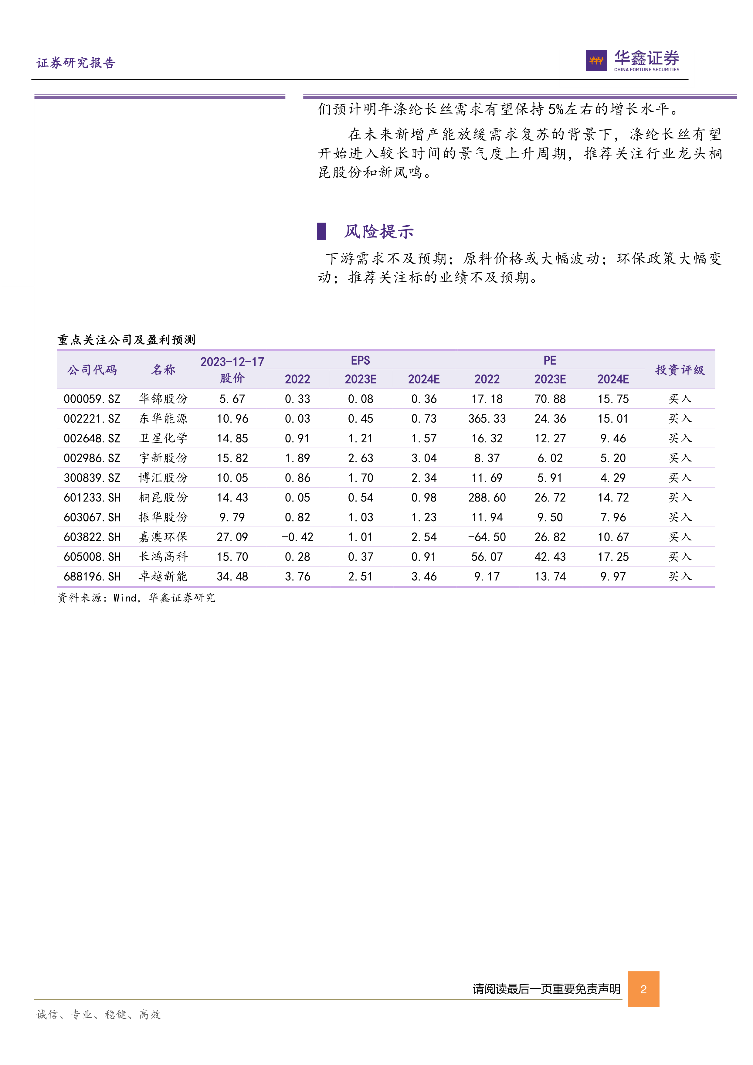 下游需求不及预期;原料价格或大幅波动;环保政策大幅变动;推荐关注标的业绩不及预期