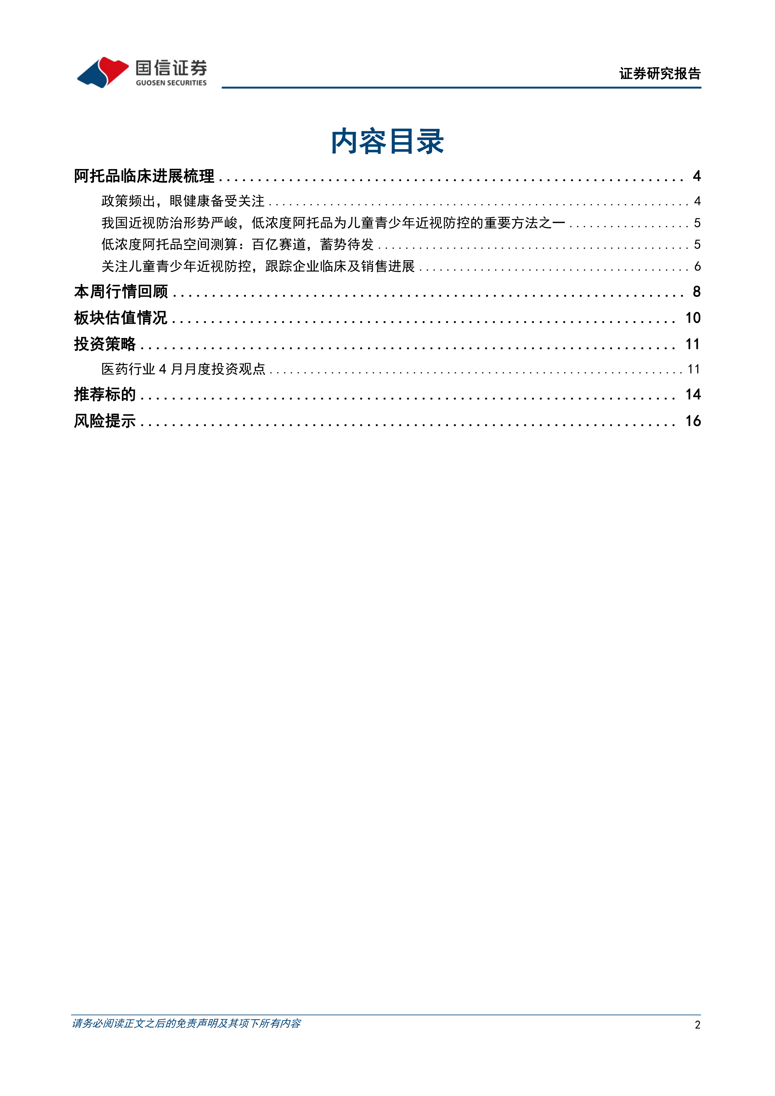 本报告对国内阿托品市场进行了深入分析,指出其巨大的市场潜力和投资机会。 报告同时对本周医药板块的市场表现和估值水平进行了分析,并提出了相应的投资策略和推荐标的。 投资者应结合自身情况,谨慎决策。 报告中所列数据和分析仅供参考,不构成投资建议。 投资者需自行承担投资风险。