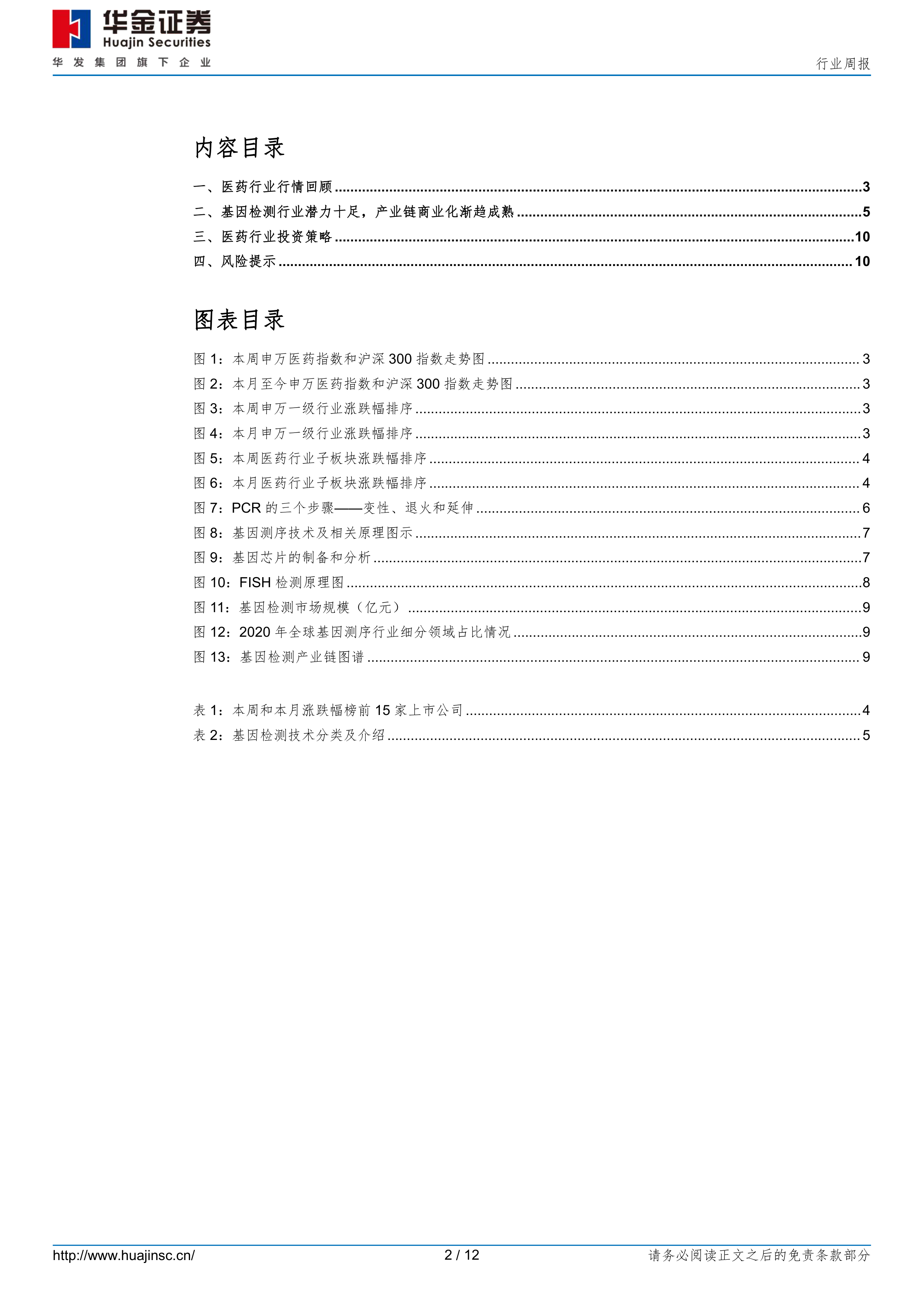 本报告对医药行业整体表现和基因检测行业发展现状进行了深入分析,指出基因检测行业正处于快速发展阶段,市场规模持续扩大,投资机会显著。报告建议投资者关注基因检测产业链上的优质公司,同时也要注意行业投资风险。报告中提供的投资建议仅供参考,不构成投资建议,投资者应根据自身情况进行独立判断和决策。