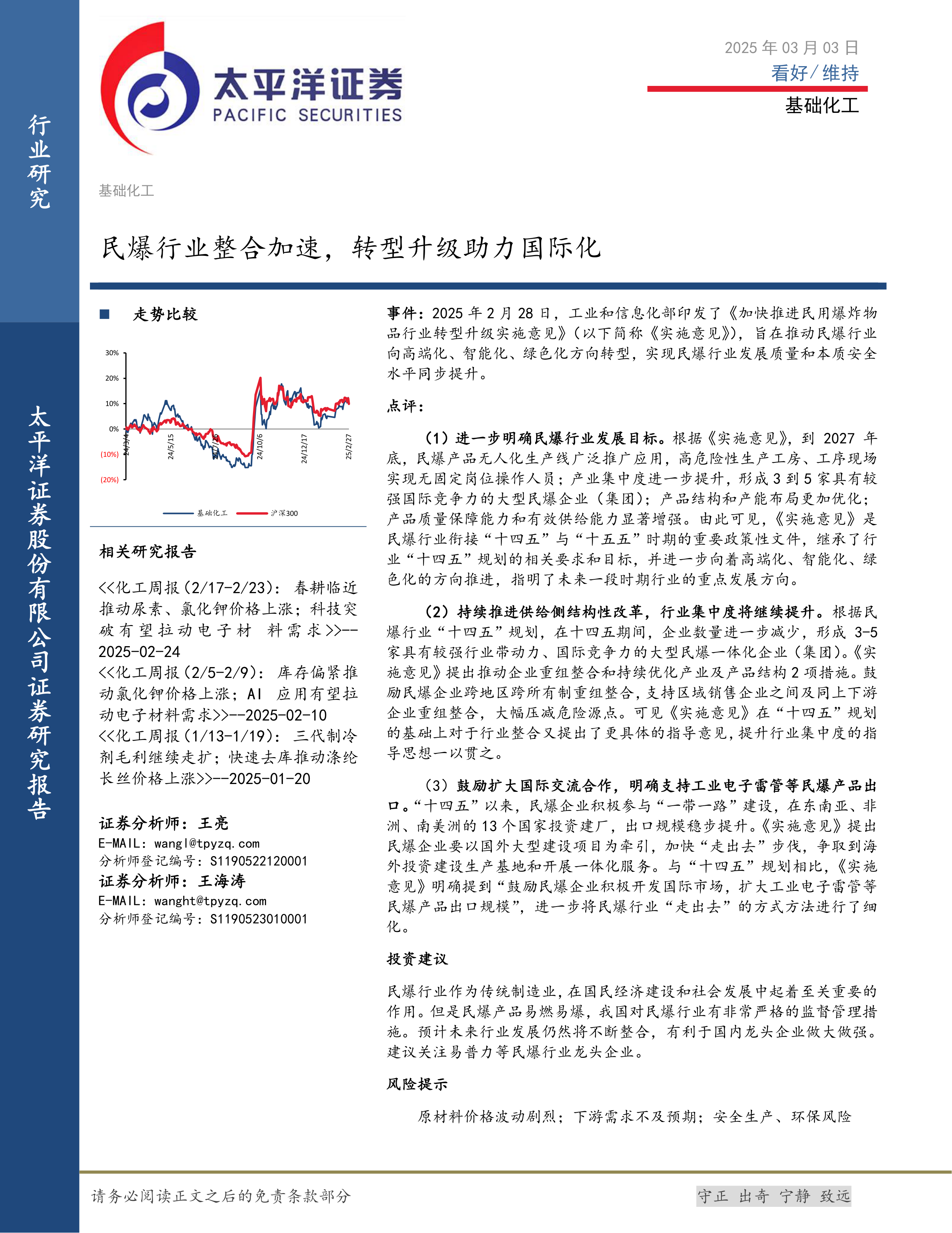 基础化工:民爆行业整合加速,转型升级助力国际化
