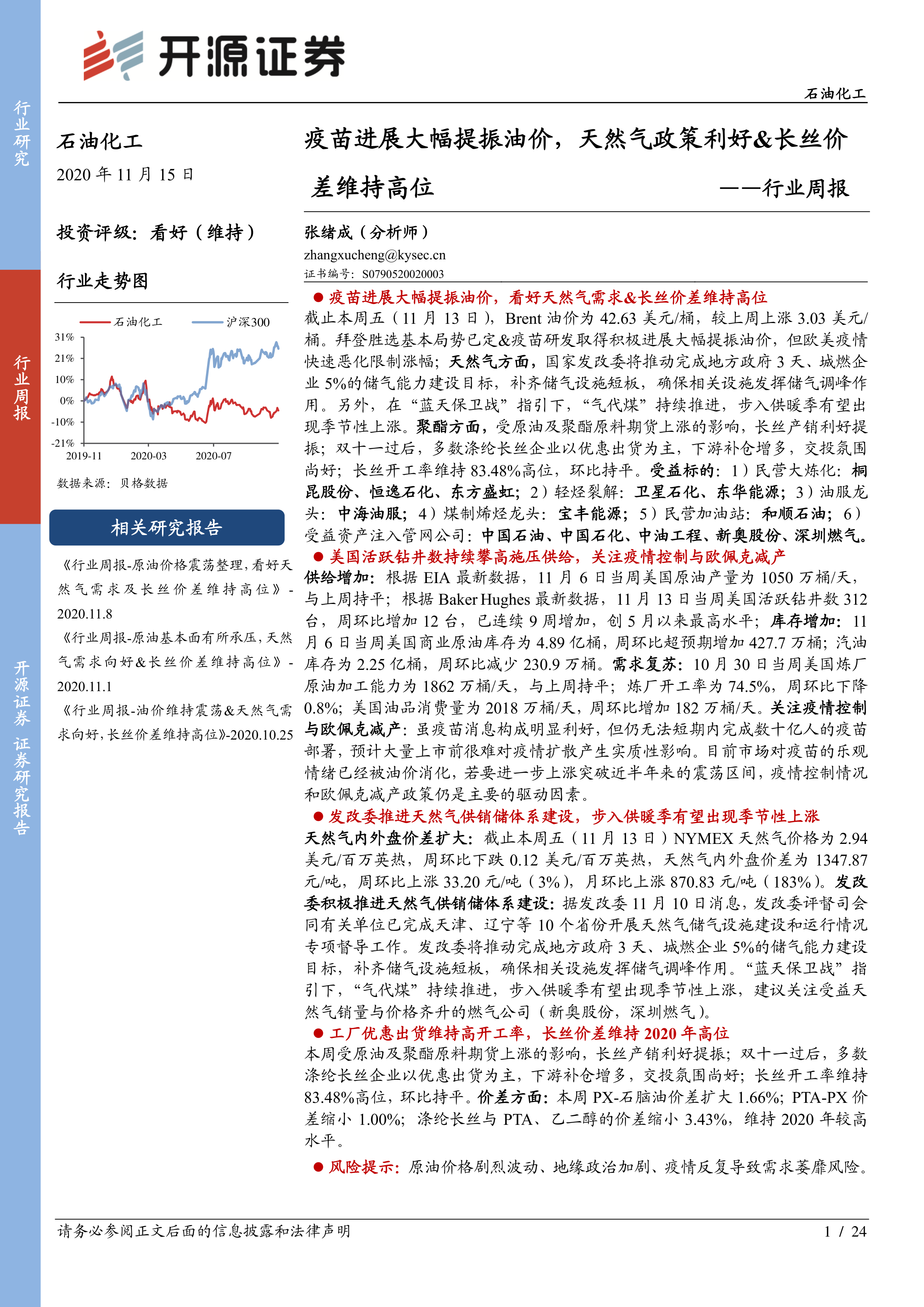 石油化工行业周报:疫苗进展大幅提振油价,天然气政策利好&长丝价差维持高位